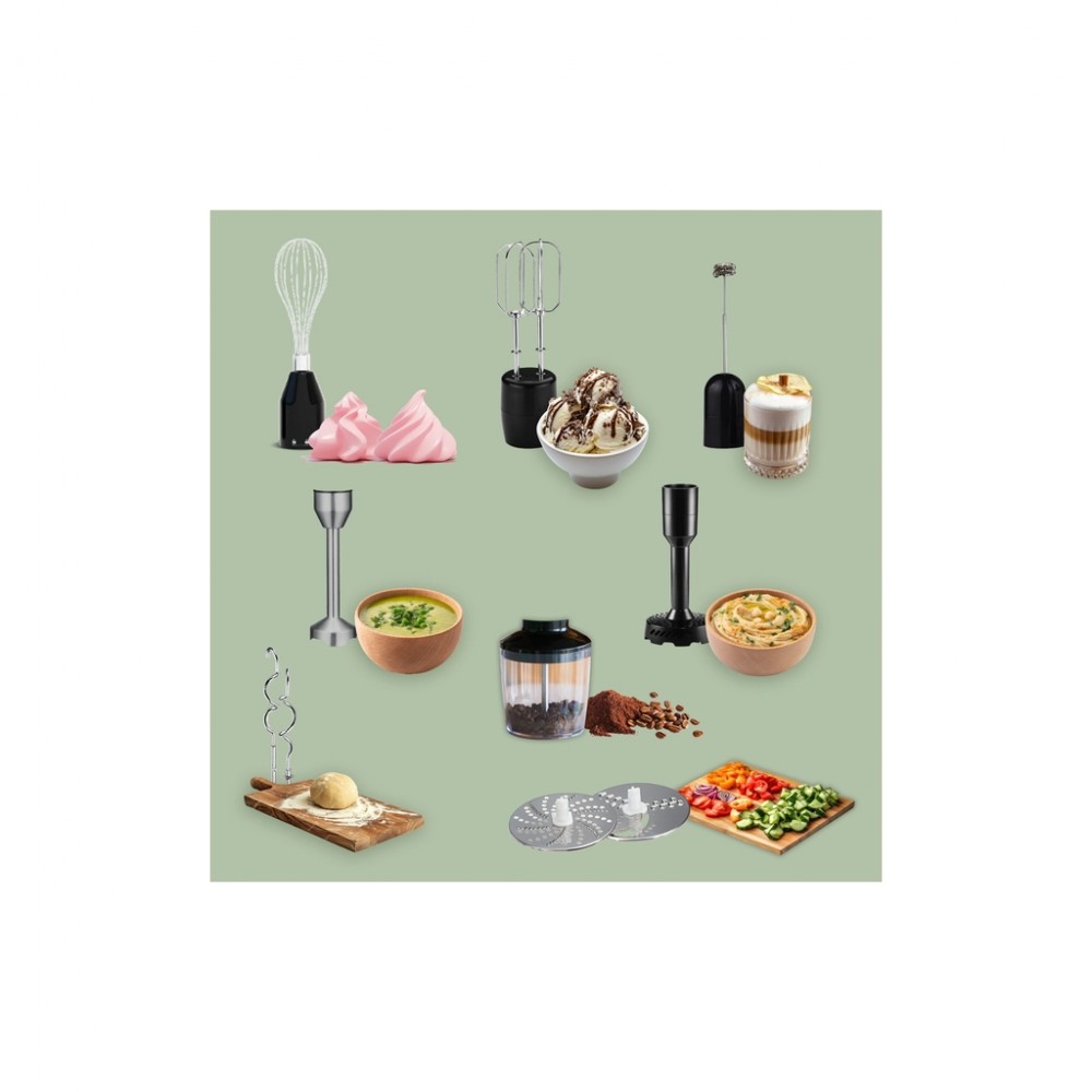 занурювальний, 200 Вт, з подрібнювачем, Ємність міні-подрібнювача - 860 мл, Ємність великого подрібнювача - 1000 мл, кількість швидкостей - 8, 555 х 240 х 200 мм, 2.6 кг, чорний