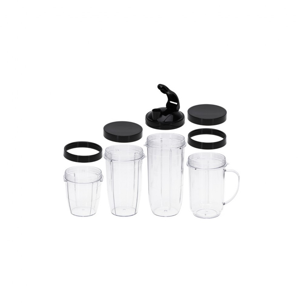Фітнес-блендер Adler AD 4084 постачається у комплекті з трьома скляними ємностями різного об’єму - 700 мл, 500 мл та 300 мл, а також чашкою з ручкою об’ємом 500 мл. До складу комплекту постачання також входять чотири кришки, одна з яких оснащена отвором для пиття, який закривається.