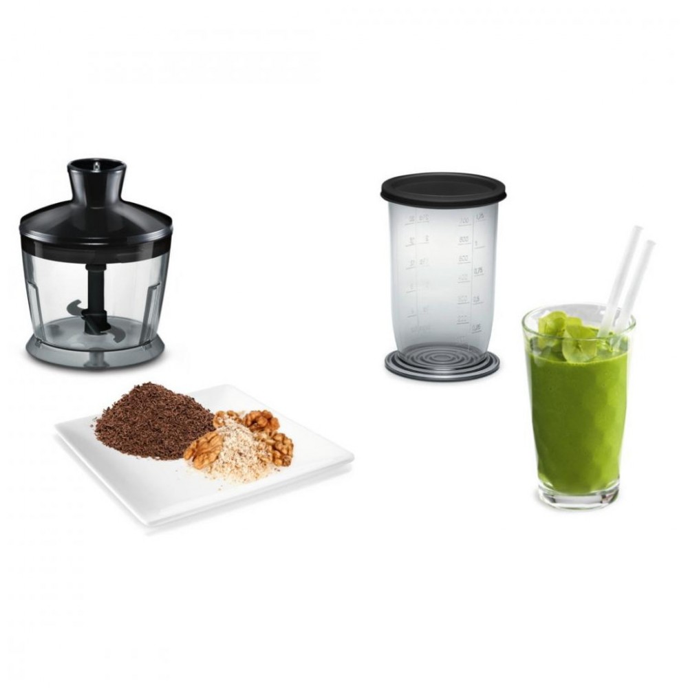 - Легка чистка: аксесуари можна мити в посудомийній машині (занурювальну частину, чашу подрібнювача) за винятком моторного блоку і перехідника.