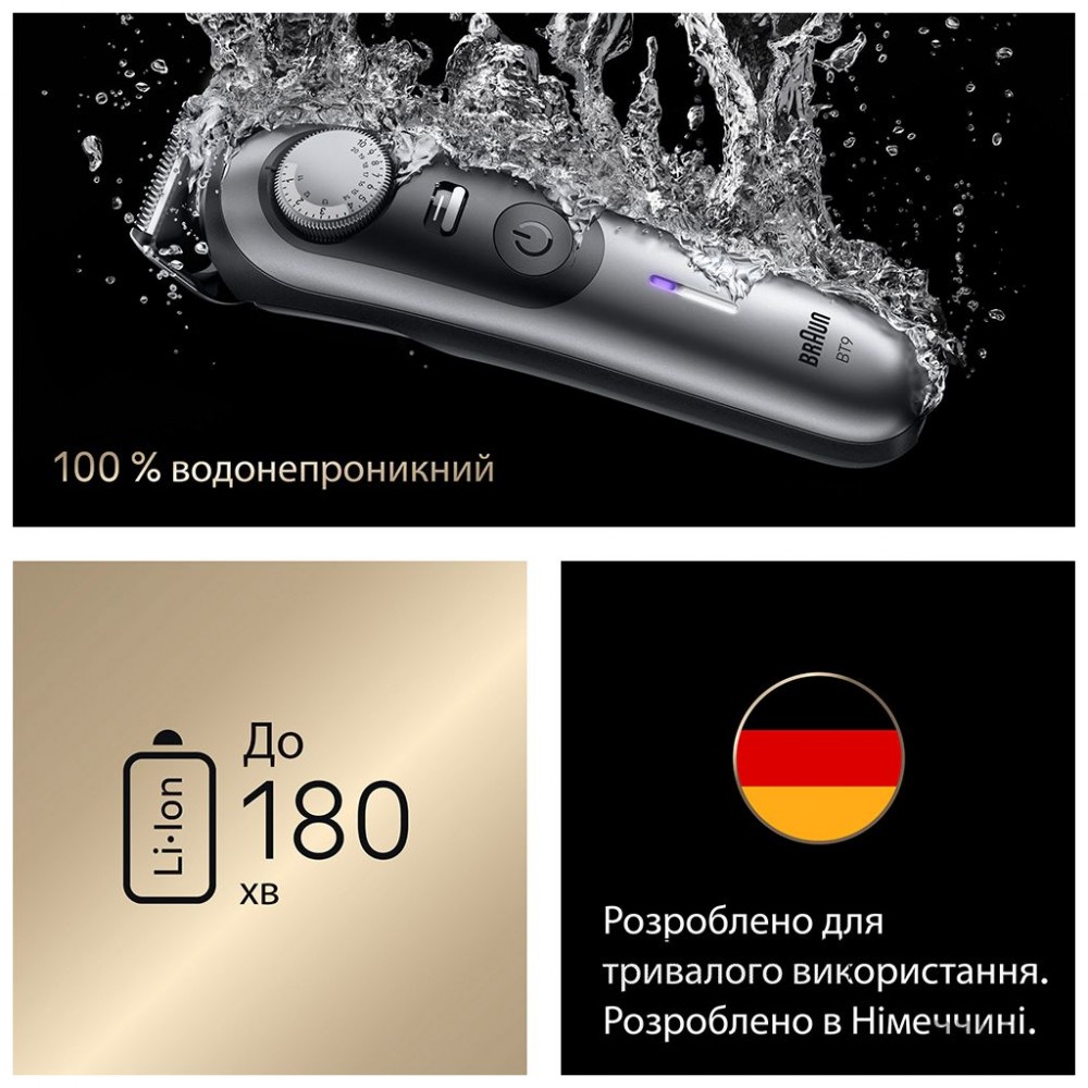 Призначення - для бороди і вусів, для тіла, для брів і бакенбард, для обличчя, тип гоління - сухе, вологе, система гоління - леза, кількість бритвених головок/сіток - 1, матеріал лез - сталь, живлення - акумулятор, Колір - сірий
