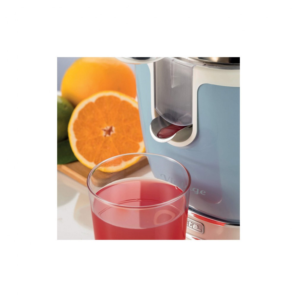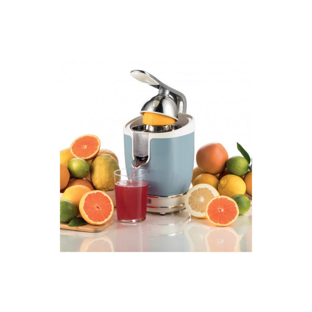 Апельсиновий сік на сніданок ідеально підходить для наповнення вітаміном С, мінеральними солями і енергією. З електричною соковижималкою Ariete Vintage у вас буде потужна і безшумна соковижималка, яка одночасно додасть вашій кухні стиль ретро, типовий для лінії Ariete Vintage Line, з міцним металевим корпусом і хромованою обробкою. В комплекті 2 конуса для великих і маленьких фруктів: великий конус з нержавіючої сталі і маленький конус, забезпечені штифтом для зручної фіксації навіть найменших фруктів. Старовинна цитрусовий соковитискач, оснащенний важелем тиску, щоб легко розчавити плід, забезпечуючи стиснення до останньої краплі.