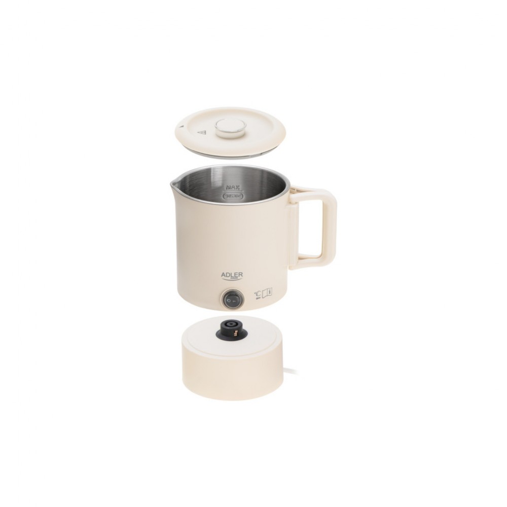 Набирайте у чайник Adler AD 1388b необхідний об’єм води, використовуючи індикацію рівня на внутрішній частині корпусу, яка виготовлена з безпечної для здоров’я нержавіючої сталі. Об’єму чайника 0,8 л вистачає для приготування 2-3 чашок чаю.