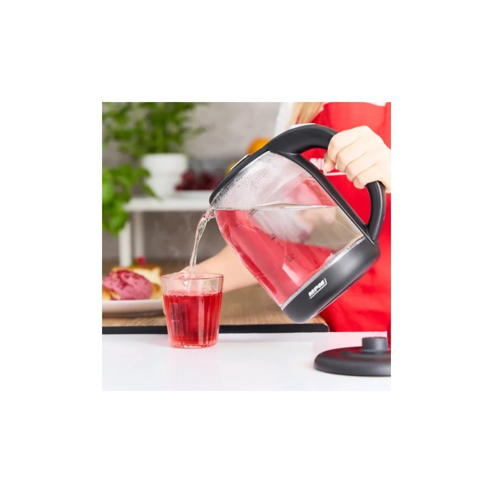 Тип - звичайний, об'єм - 1.6 л, 1500 Вт, матеріал корпусу - скло, Фільтр від накипу - є, Кришка - незнімна, чорний