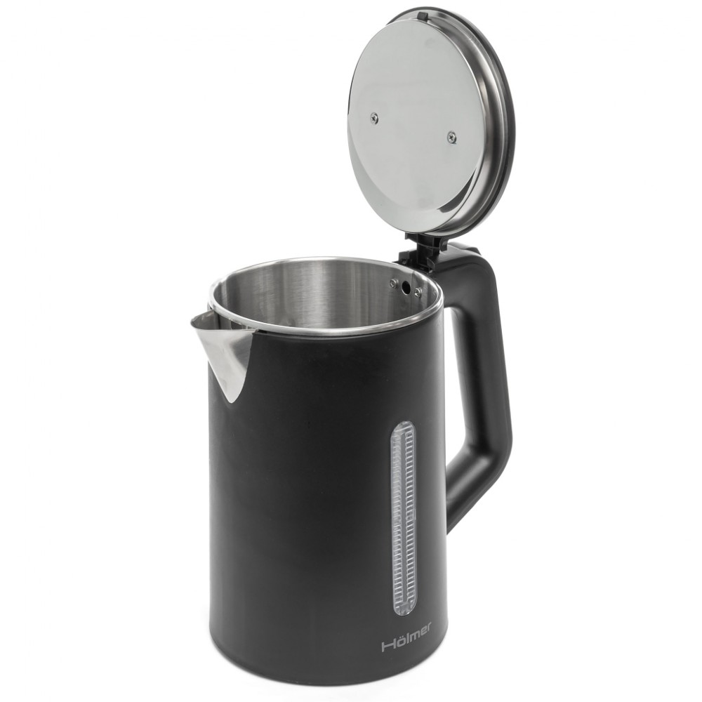 Тип - звичайний, об'єм - 1.8 л, 1500 Вт, матеріал корпусу - нержавіюча сталь, Фільтр від накипу - незнімний, Кришка - незнімна, чорний