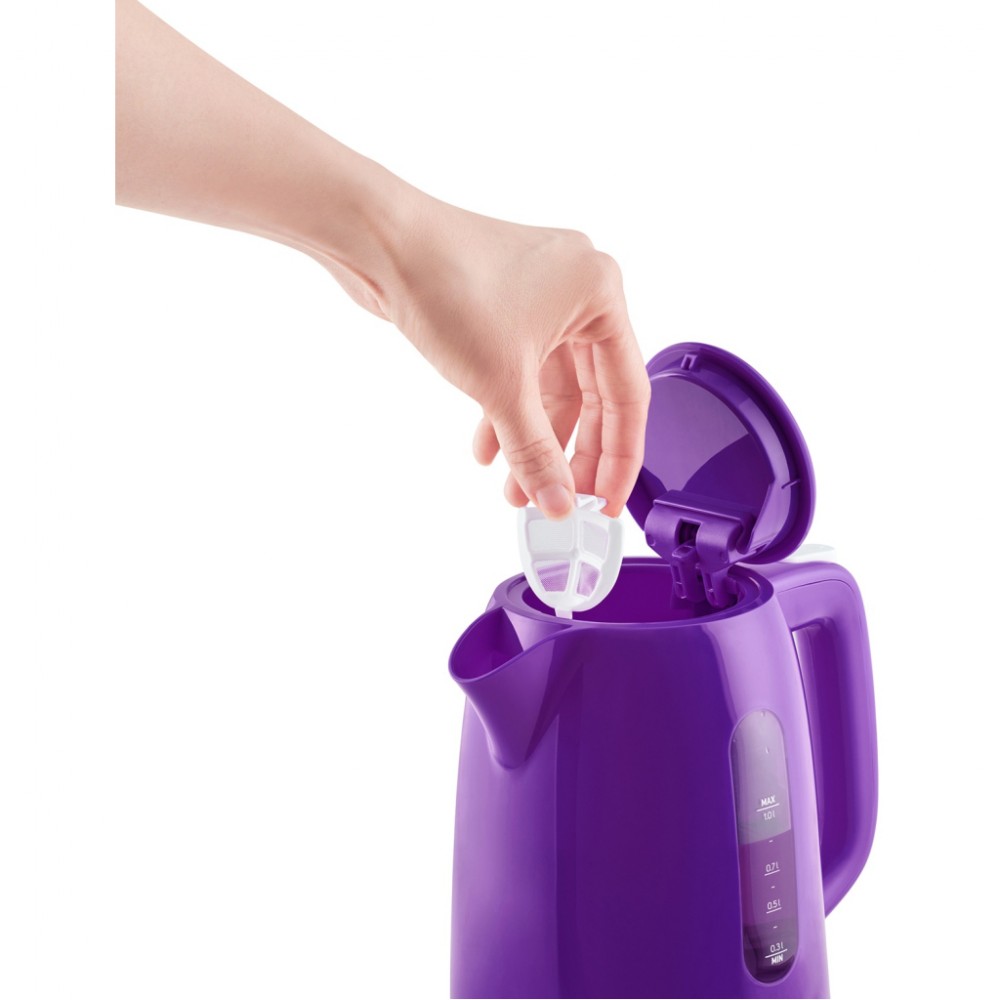 Тип - звичайний, об'єм - 1 л, 2200 Вт, матеріал корпусу - пластик, Фільтр від накипу - є, Кришка - незнімна, фіолетовий