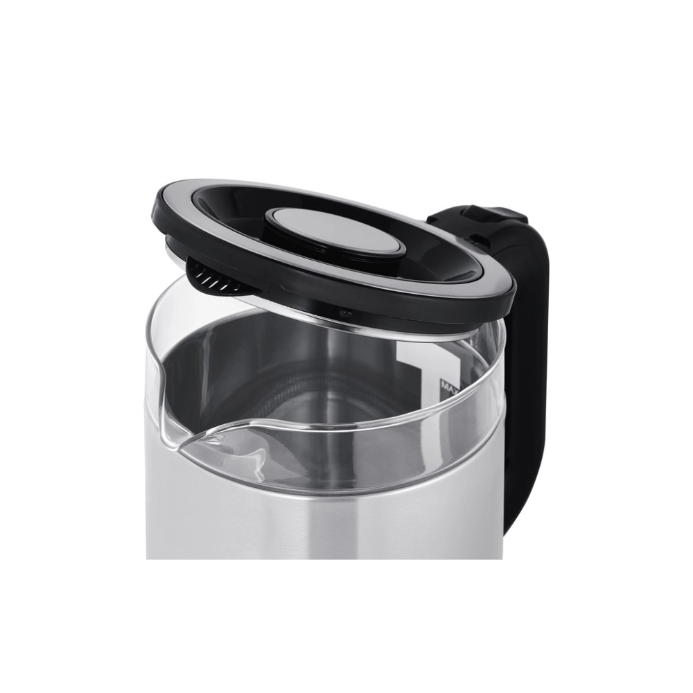 Тип - звичайний, об'єм - 1.8 л, 1500 Вт, матеріал корпусу - нержавіюча сталь, пластик, скло, Фільтр від накипу - незнімний, Кришка - незнімна