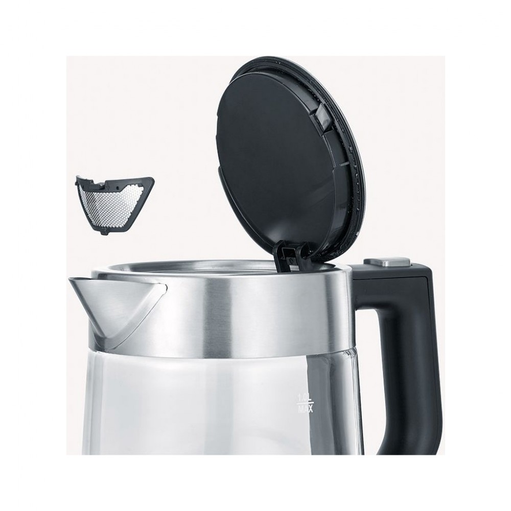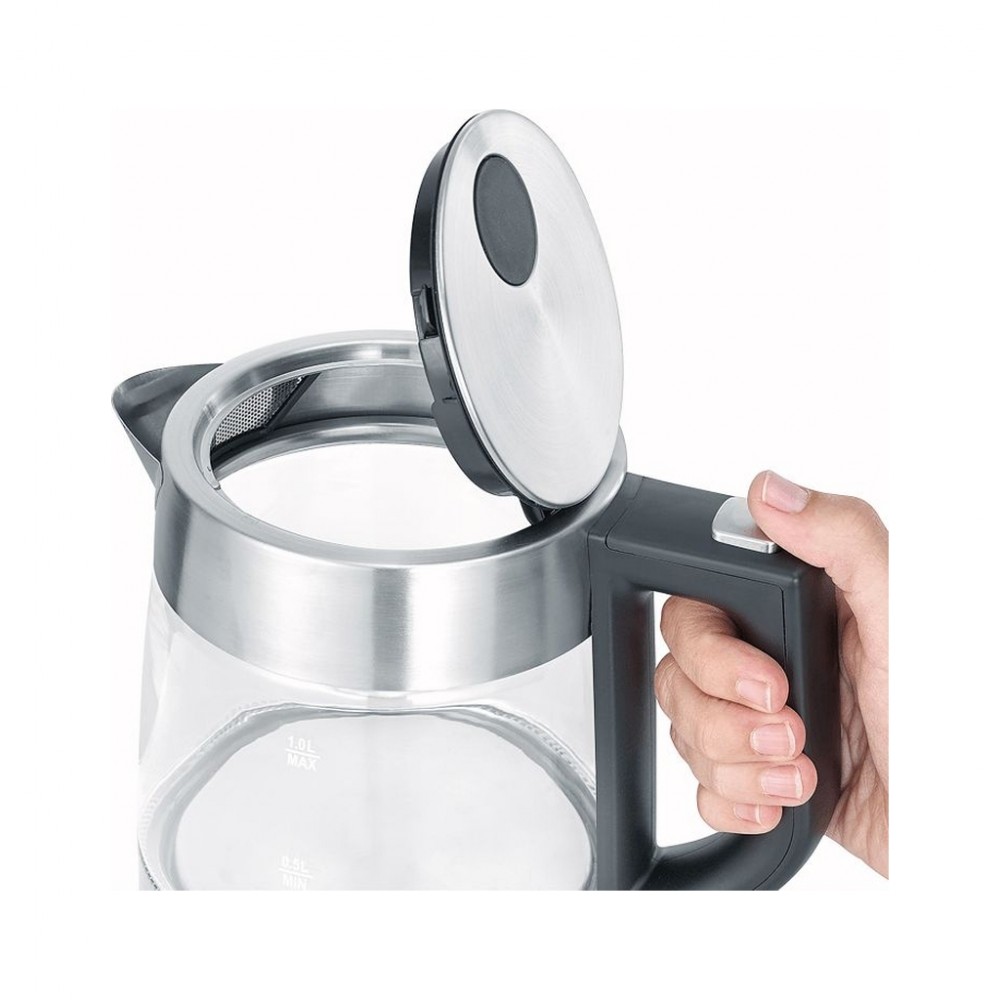 Тип - звичайний, об'єм - 1 л, 2200 Вт, матеріал корпусу - скло, Фільтр від накипу - є, Кришка - незнімна, нержавіюча сталь