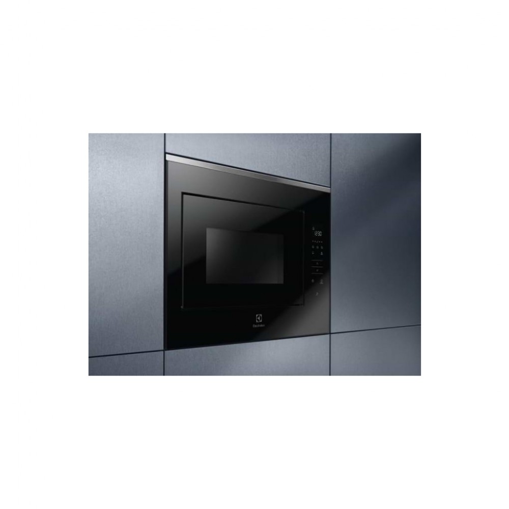 Electrolux KMFE264TEX - багатофункціональна мікрохвильова піч чорного кольору з поворотним скляним столом. Велика панель управління з дисплеєм, розташована збоку по всій висоті пристрою. Дверцята пристрою відкривається одним натисканням сенсорної кнопки, що дуже зручно в процесі повсякденної експлуатації.