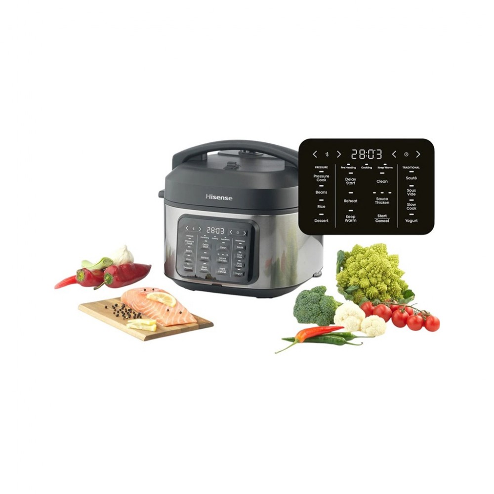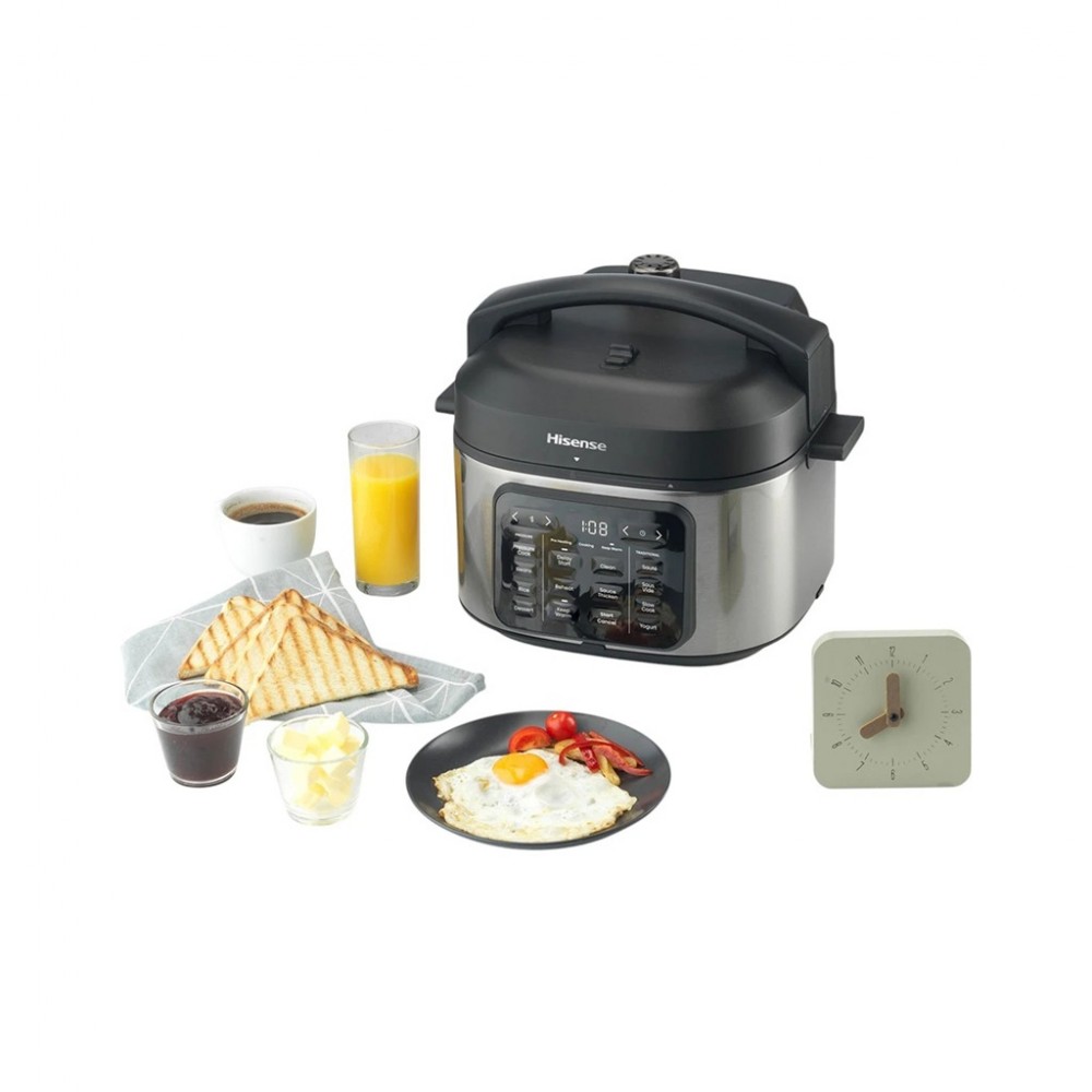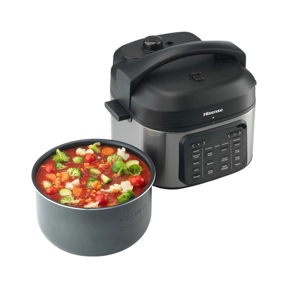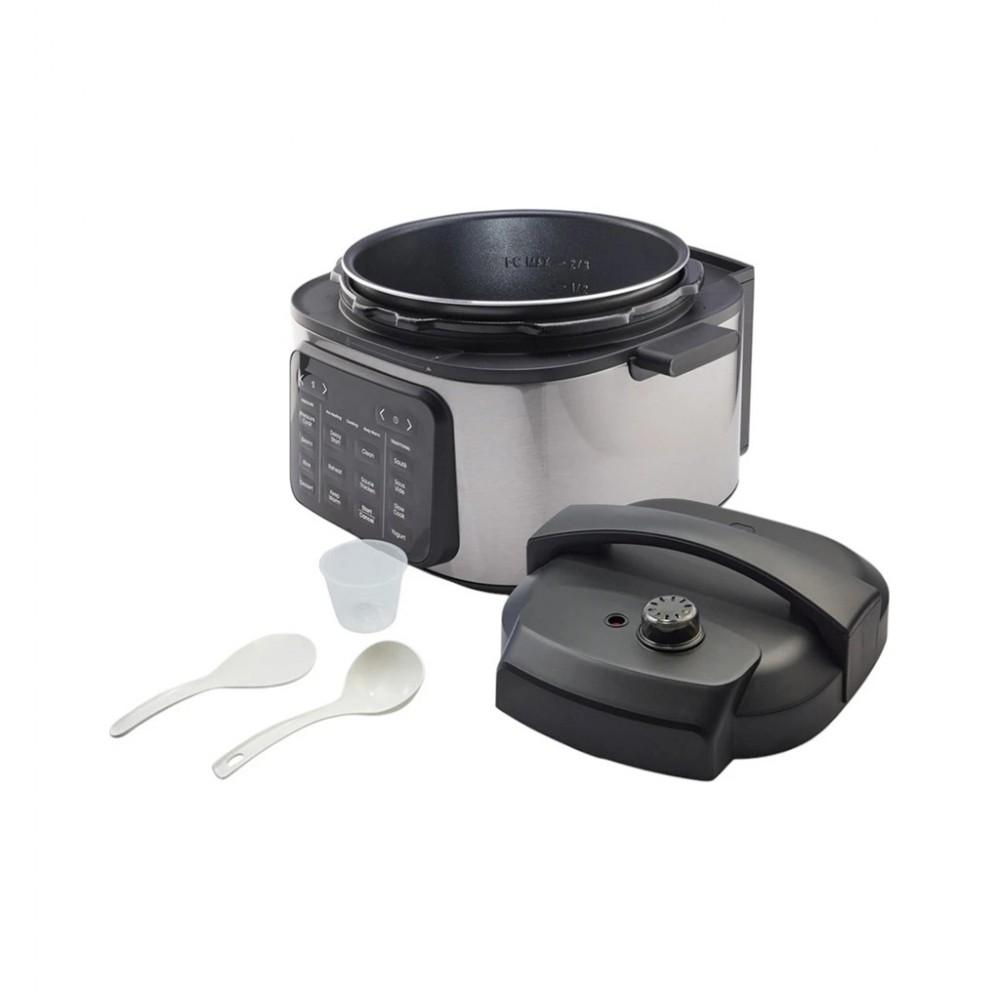 мультиварка - скороварка, 1500 Вт, об'єм чаші - 6 л, тип внутрішнього покриття - антипригарне, алюміній, кількість програм - 10, Керування - сенсорне, габарити - 36 х 36.6 х 30 см, вага - 7.2 кг, чорний, нержавіюча сталь
