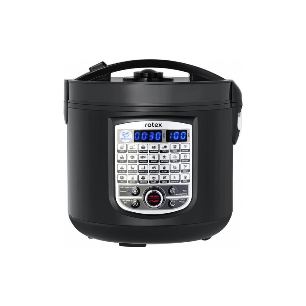 мультиварка, Тип нагріву - ТЕН-нагрів, 900 Вт, об'єм чаші - 5 л, тип внутрішнього покриття - керамічне, дисплей - так, кількість програм - 30, Керування - електронне, довжина кабелю - 1.2 м, габарити - 290 х 265 х 265 мм, вага - 3 кг, чорний