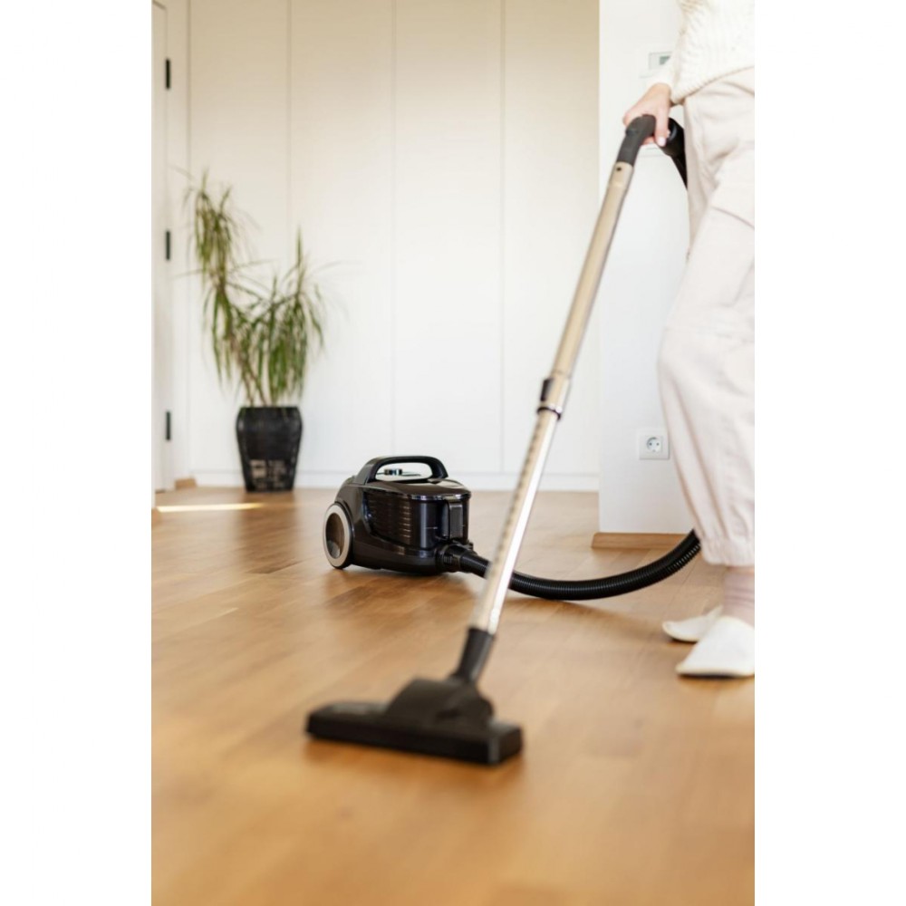 Гумові колеса — це ключова особливість пилососів, яка значно підвищує комфорт та безпеку використання. Їхня основна перевага полягає у запобіганні пошкодженню делікатних підлог. На відміну від пластикових чи металевих коліс, гумові не залишають жодних слідів, подряпин чи потертостей на таких чутливих покриттях, як паркет, ламінат, вініл або кахель. Крім того, гумова поверхня забезпечує стабільне зчеплення з будь-якою поверхнею. Це дозволяє пилососу плавно та легко переміщатися, не "ковзаючи" і не залишаючи неприємних смуг. Додатковим бонусом є зменшення шуму під час руху пилососа. Ваша підлога буде захищена, а переміщення приладу по дому стане тихим та безпроблемним.