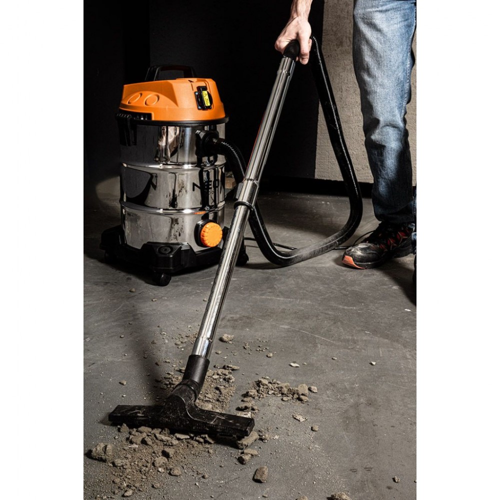 Багатоцільовий пилосос, пристосований, серед іншого, для роботи з гіпсовою шліфувальною машиною. Відрізняється високою потужністю всмоктування, а також міцним баком з нержавіючої сталі. Його можна використовувати як для вологого, так і для сухого прибирання. Він буде добре працювати як вдома, так і в майстерні, гаражі або під час ремонту. Пилосос має функцію видування, великий вимикач, а також можливість розташування елементів шланга на корпусі.