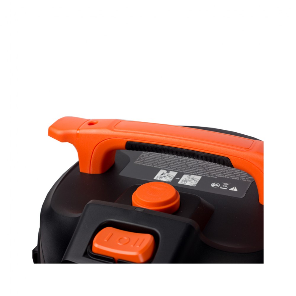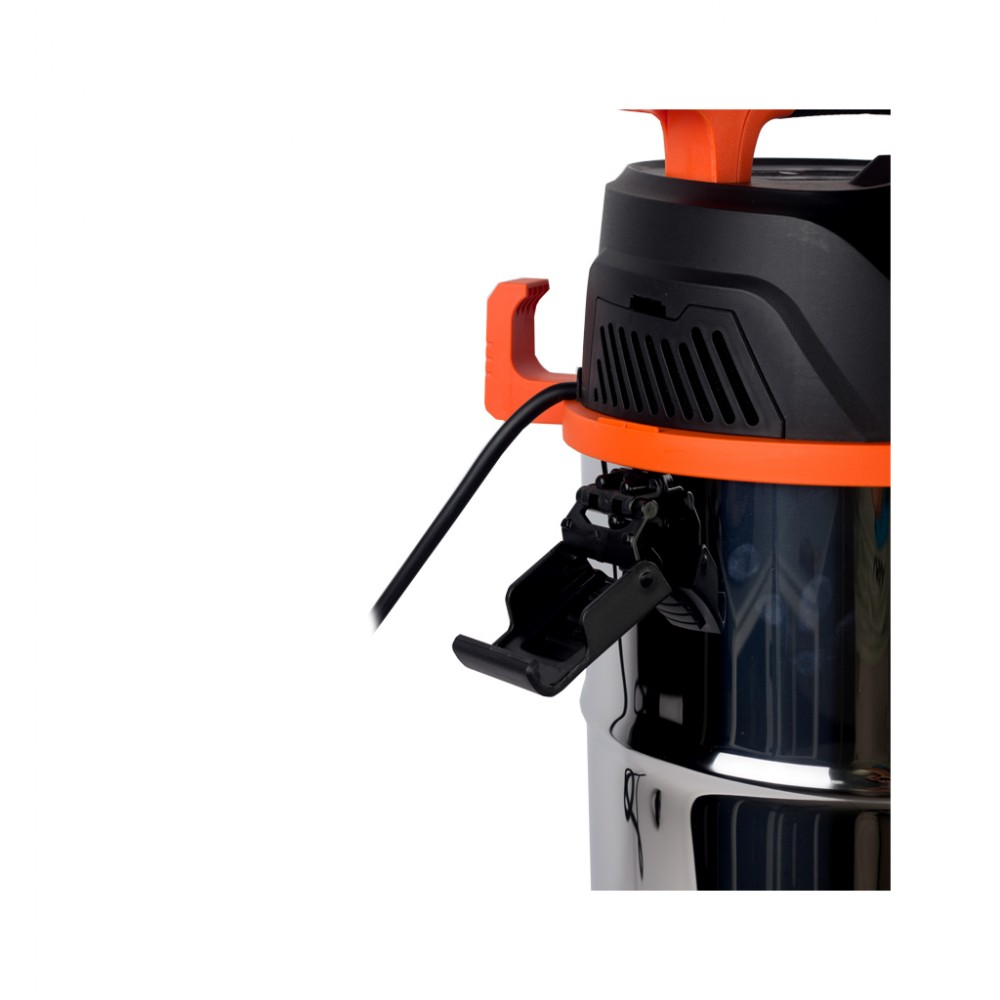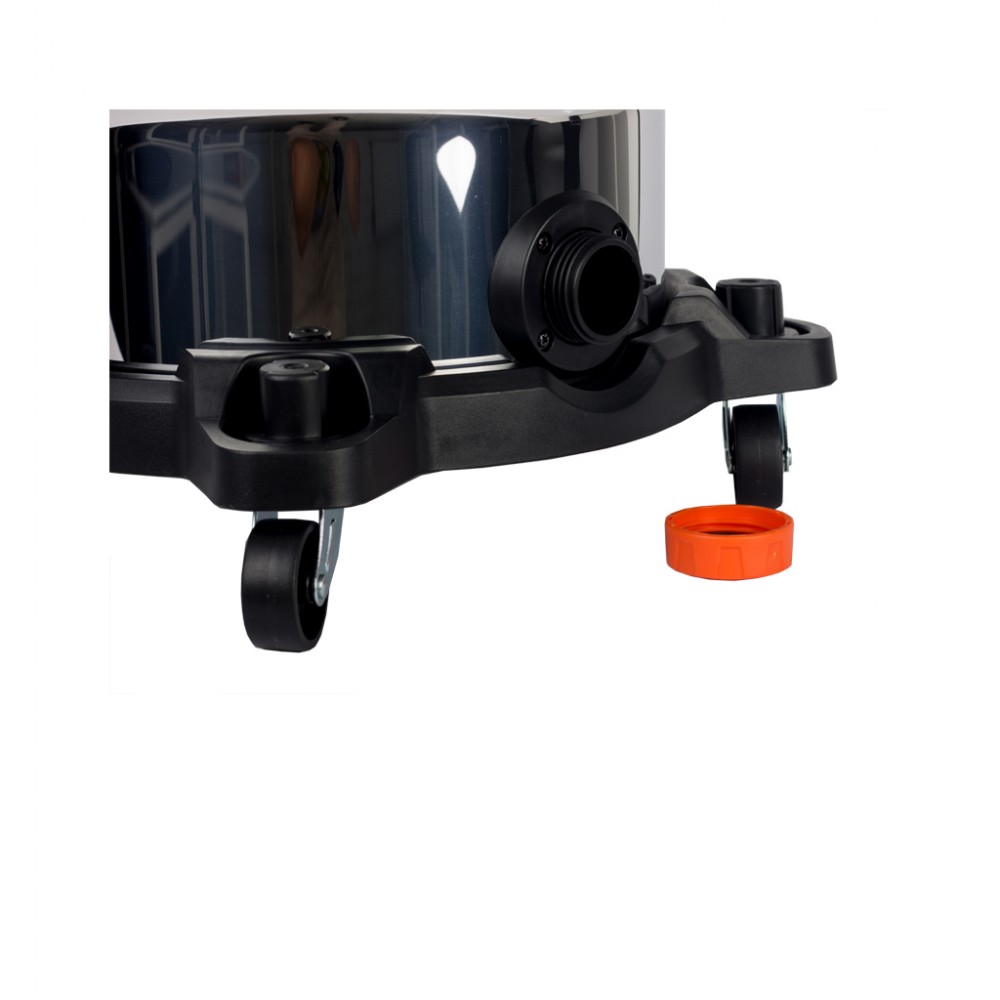 Корпус з нержавіючої сталі гарантує довговічність та стійкість до корозії, він стійкий до впливу хімічних розчинів та не вимагає особливого догляду. Сміття з гострими краями (метал, каміння тощо) можна всмоктувати безпосередньо в бак, не побоюючись пошкодити його.