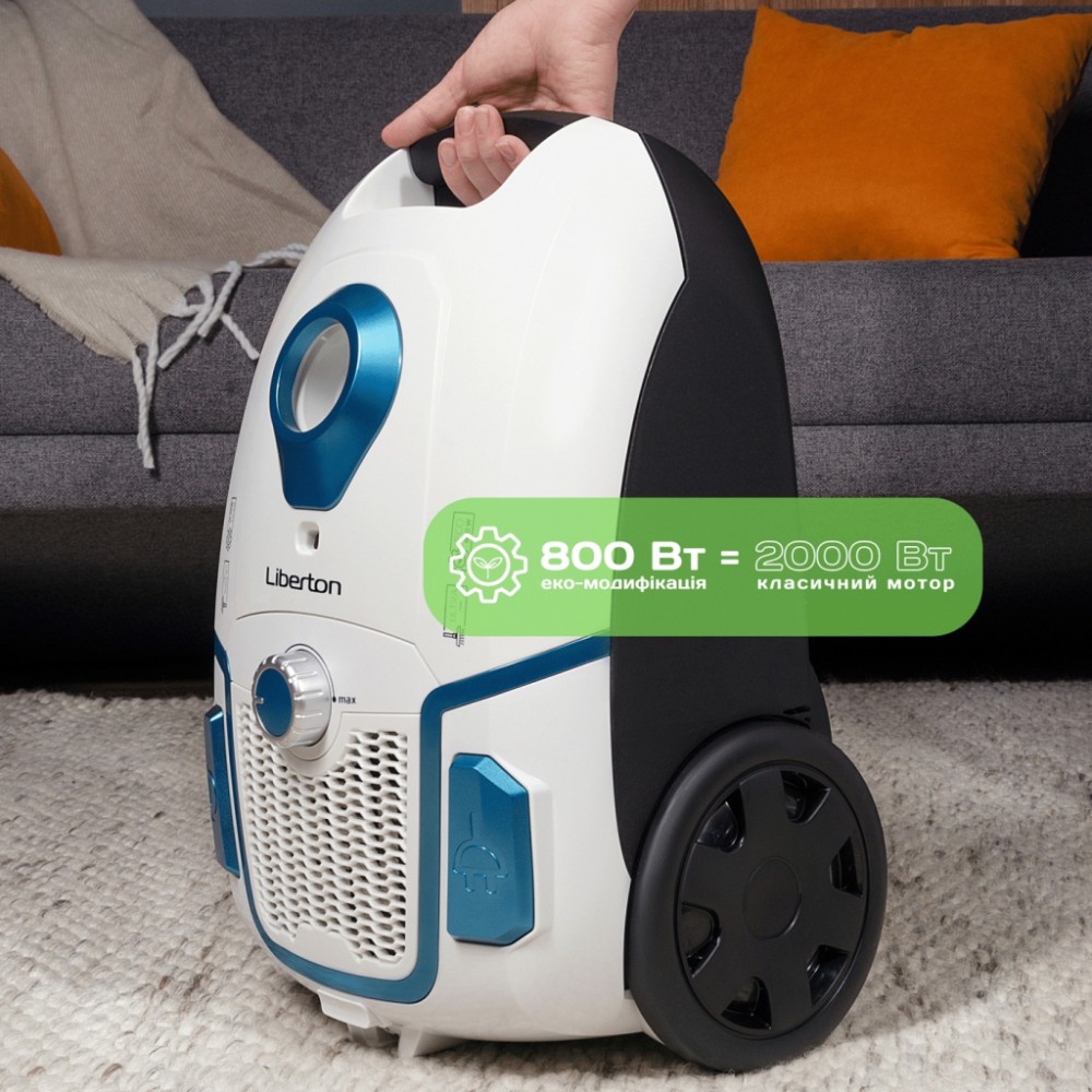 - Комплектація: телескопічна хромована трубка, насадки підлога/килим/щілина, шнур 4,5 м;