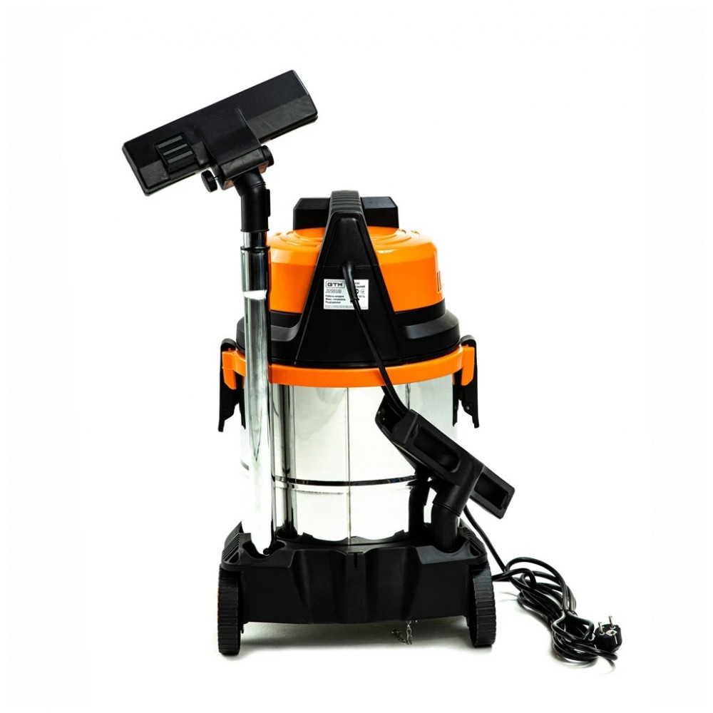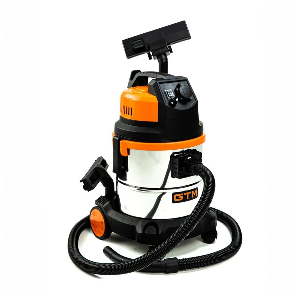 GTM JN 503 - компактний промисловий пилосмок для прибирання сухого сміття. Сертифікований для роботи з пилом класу L. Працює від побутової електромережі з напругою 220 В. Його контейнер виготовлено з нержавіючої сталі та має ємність 30 літрів чого достатньо для поглинання грубого або дрібного сміття.