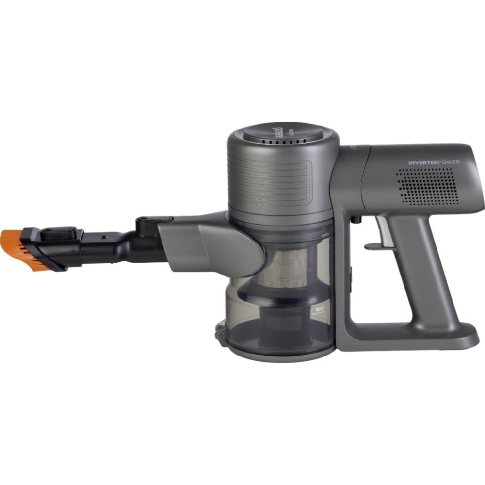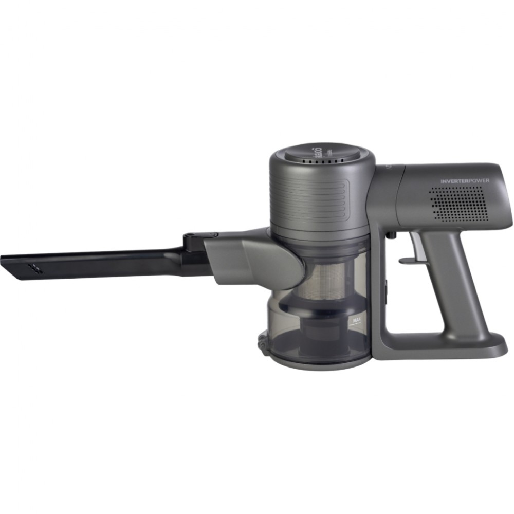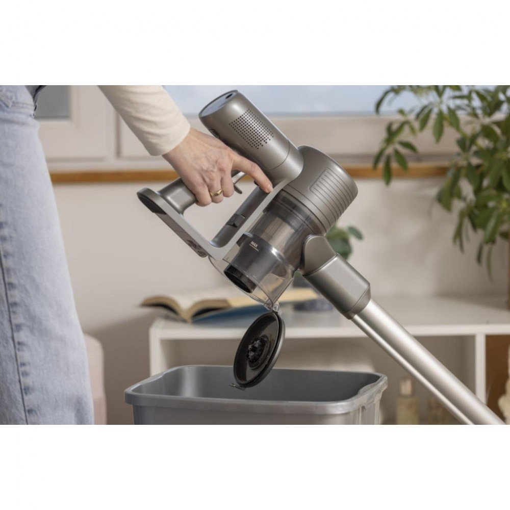 З контейнером для пилу об'ємом 0.5 л цей пилосос пропонує зручність без додаткових витрат на змінні мішки. Керування пристроєм знаходиться прямо на ручці, що робить його надзвичайно зручним у використанні. Бездротовий дизайн позбавляє від зайвих клопотів з шнуром, дозволяючи вільно переміщатися під час прибирання.
