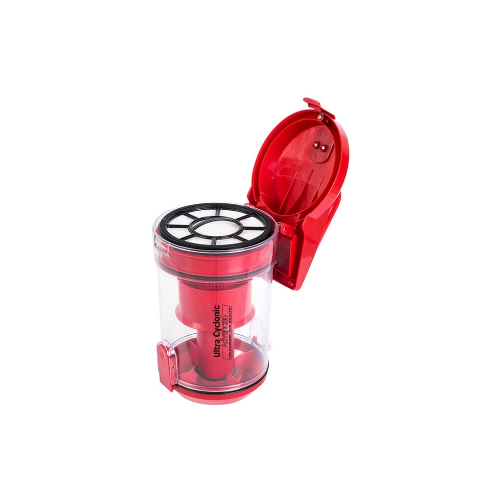 Компактний циклонний пилосос без мішка для прибирання пилу. Удосконалена конструкція пилозбірника запобігає контакту з пилом під час його очищення.