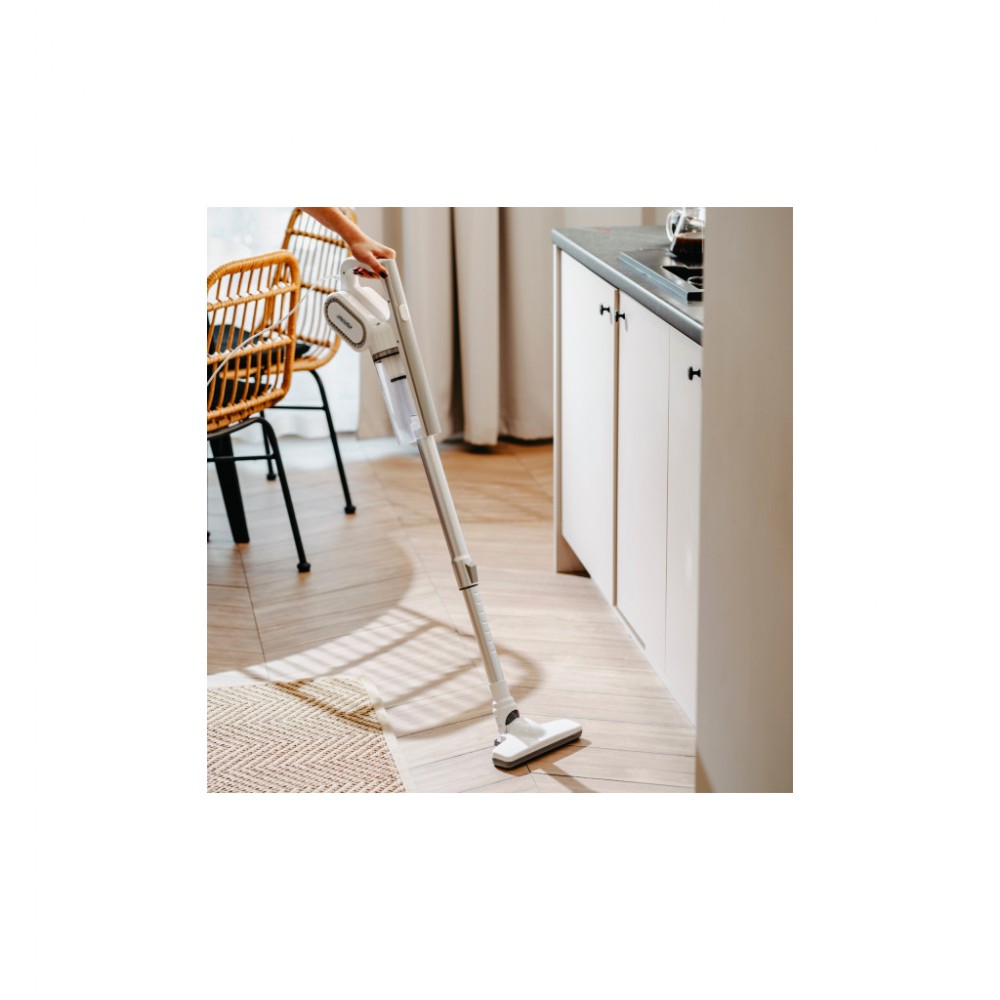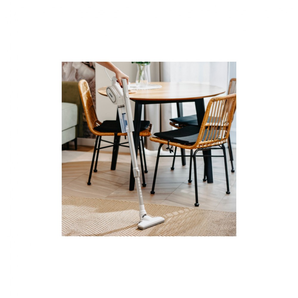 сухе, 14 кПа, 400 Вт, Тип фільтра - мікрофільтр, Ємність пилозбірника - 0.5 л, 80 дБ, 1120 x 210 x 190 мм, 1.65 кг, Колір - білий