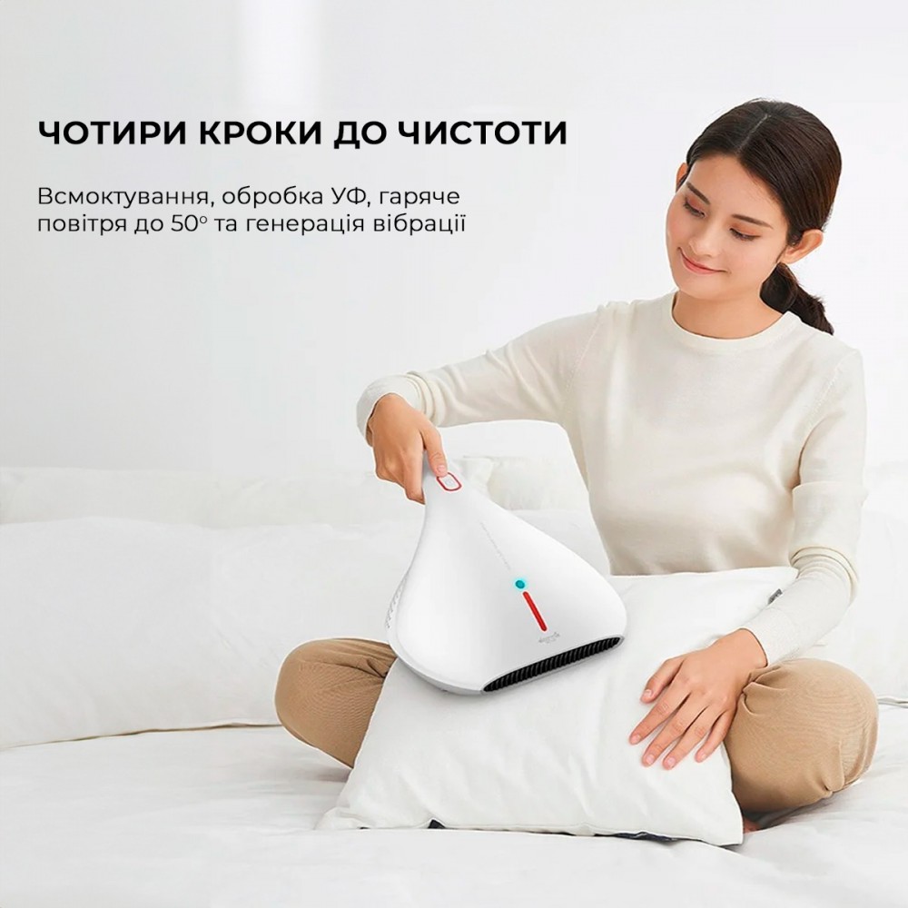 Пилосос Handheld Anti-mite Vacuum Cleaner CM800 від Deerma не залишає жодного шансу кліщам. У ньому поєднуються 4 ефективних способи боротьби з пиловими кліщами: світло, жар, вібрація і всмоктування. Комплексний захист вмикається всього однією кнопкою, швидко видаляючи всіх кліщів із тканини.