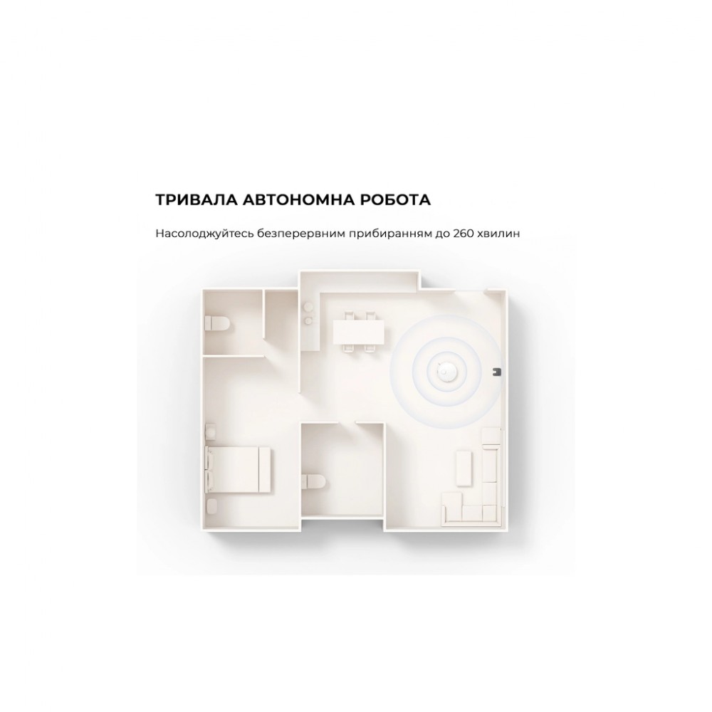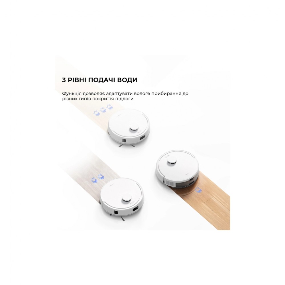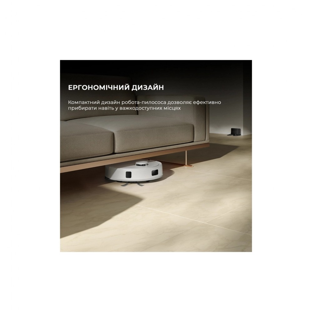 Ємність пилозбірника - 0.33 л, Ємність водяного баку - 0.25 л, робот: 320 x 320 x 96 мм; база: 213 x 173 x 270 мм, 2.8 кг, Колір - білий