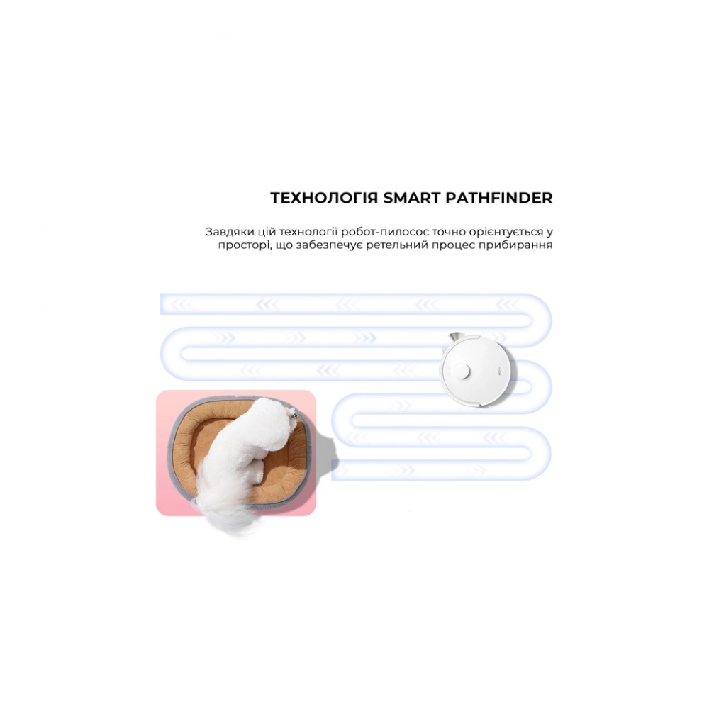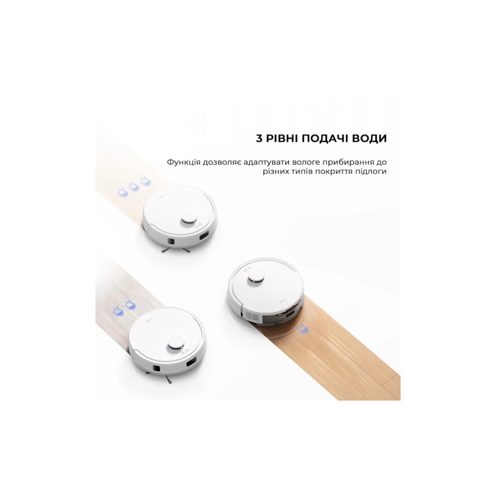 Ємність пилозбірника - 0.33 л, Ємність водяного баку - 0.245 л, робот: 320 x 320 x 96 мм; база: 213 x 173 x 270 мм, 2.8 кг, Колір - білий
