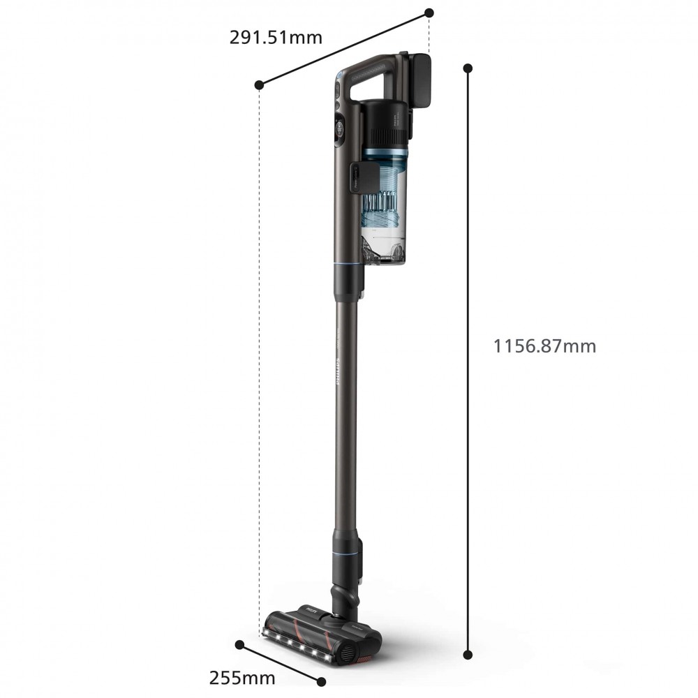 Упорайтеся з прибиранням за один раз! За один цикл заряджання пилососи Philips серії 7000 можуть прибрати понад 360 м2 в екорежимі та понад 135 м2 в турборежимі. Можна прибрати весь дім навіть у турборежимі. Можна придбати додаткові батареї та пристрій швидкої зарядки (XV1797), щоб збільшити площу прибирання вдвічі.