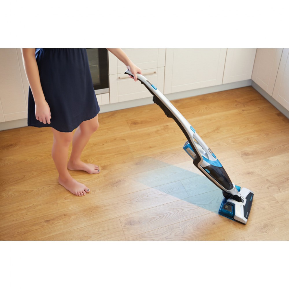 - Пилососить та миє підлогу з твердим покриттям за один прохід