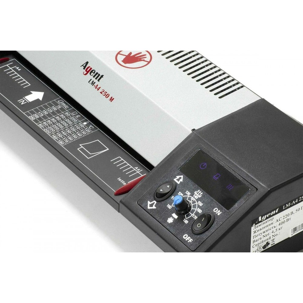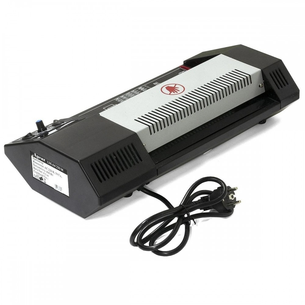 Тип - конвертний, Призначення - для офісу, Формат - A4, максимальна ширина ламінування - 230 мм, швидкість ламінування - 410 мм/хв, метод нагрівання - зовнішній обігрів валів, 430 х 210 х 105 мм