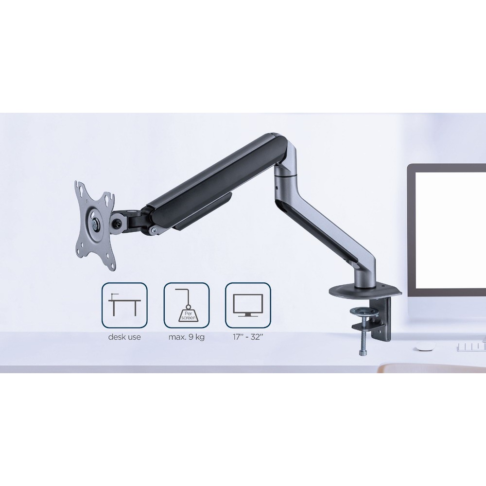 Тип - поворотно-похилий, мінімальна підтримувана діагональ - 17", максимальна підтримувана діагональ - 32", VESA - 75 x 75, 100 x 100, Максимальне навантаження - 9 кг, Нахил - ±55°, Поворот - 180°, кронштейн; Монтажний набір; Інструкція з експлуатації, чорний