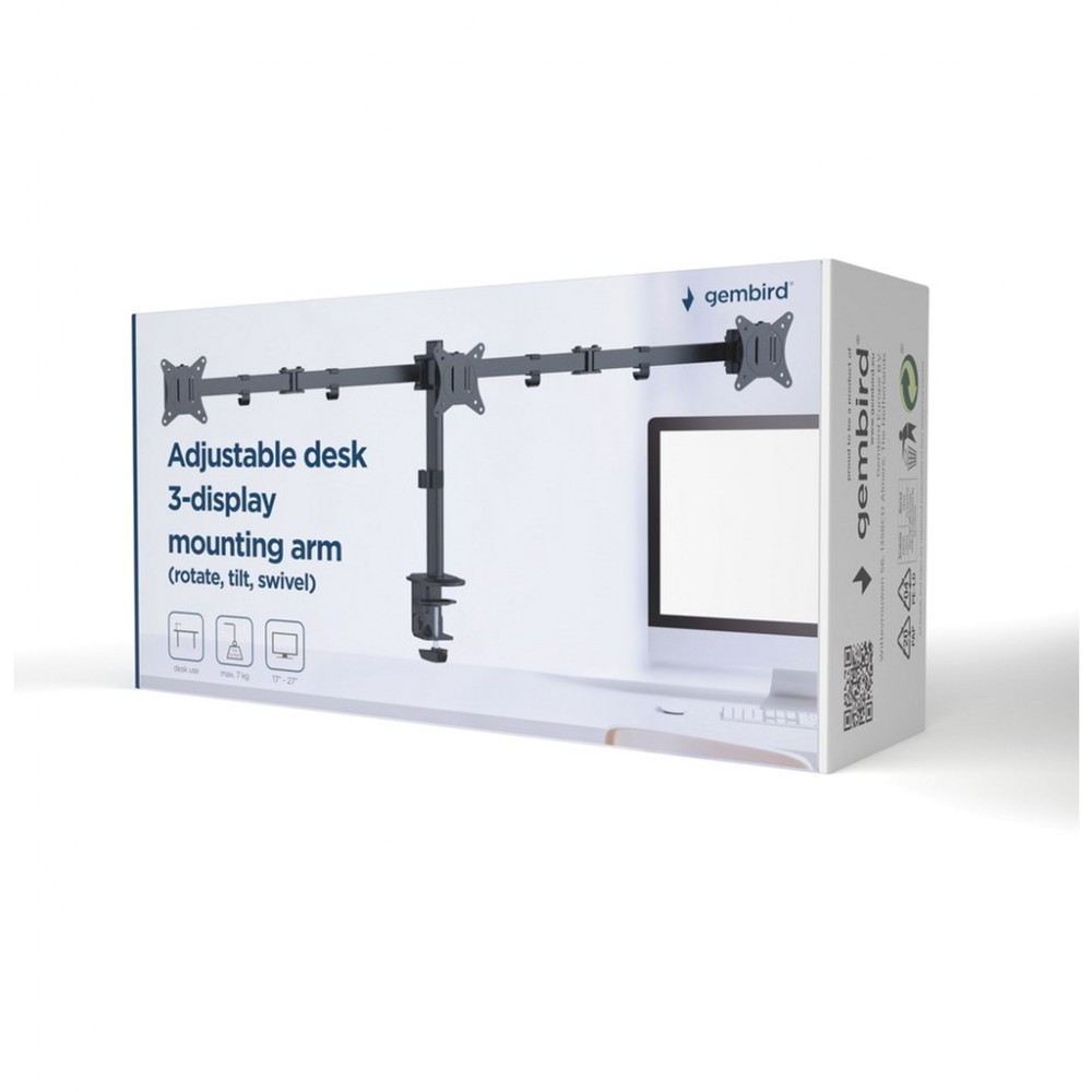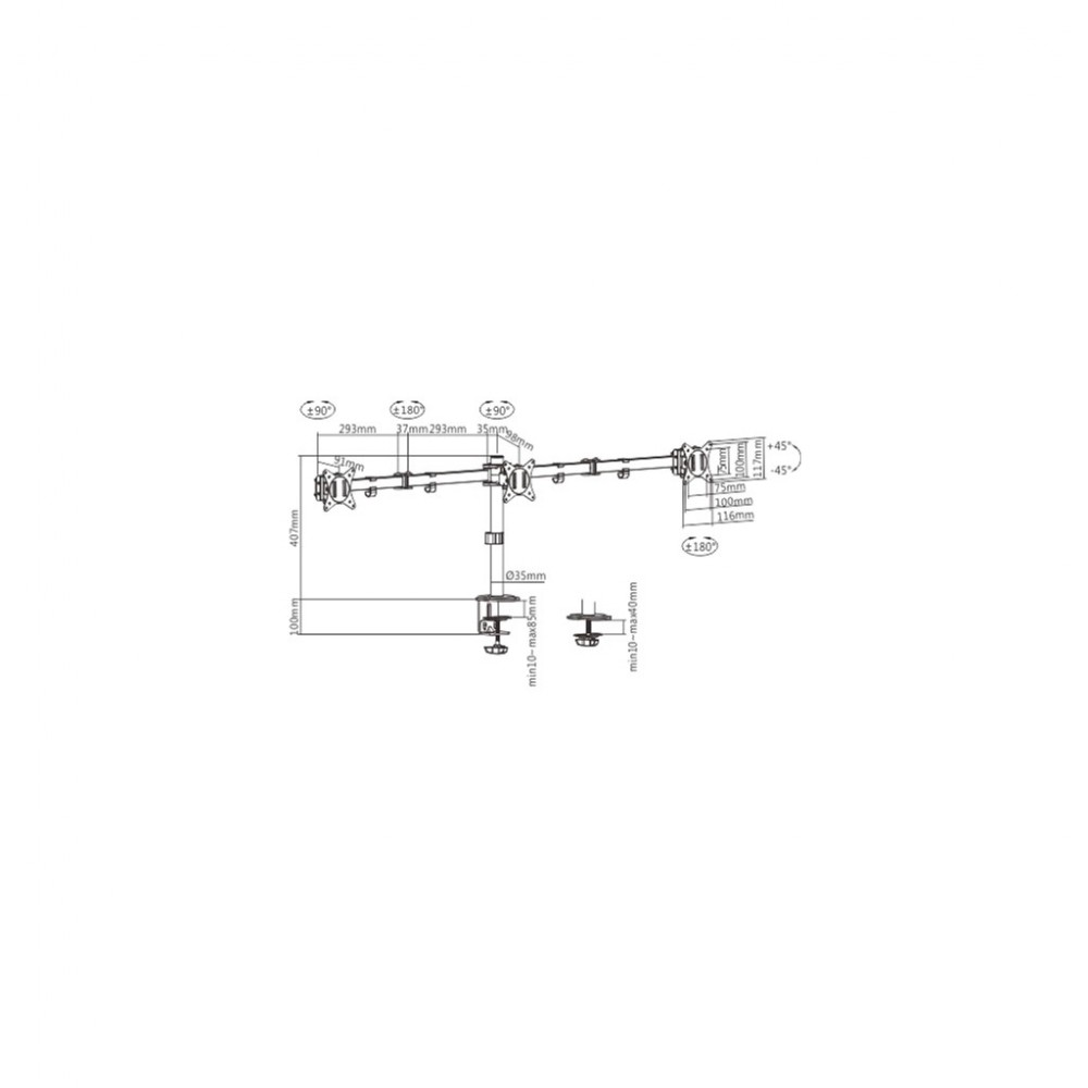 мінімальна підтримувана діагональ - 17", максимальна підтримувана діагональ - 27", VESA - 75 x 75, 100 x 100, Максимальне навантаження - 7 кг, Нахил - +45° ~ -45°, Поворот - +90° ~ -90°, Обертання - +180° ~ -180°, з прихованим укладанням дротів, кронштейн, монтажний набір, інструкція з експлуатації