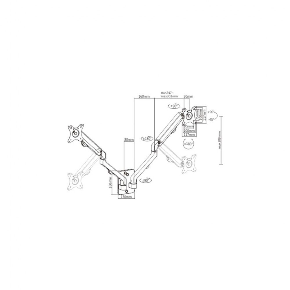 мінімальна підтримувана діагональ - 17", максимальна підтримувана діагональ - 27", VESA - 75 x 75, 100 x 100, Максимальне навантаження - 7 кг, Поворот - +90° ~ -90°, Обертання - +180° ~ -180°, з прихованим укладанням дротів, кронштейн, монтажний набір, інструкція з експлуатації