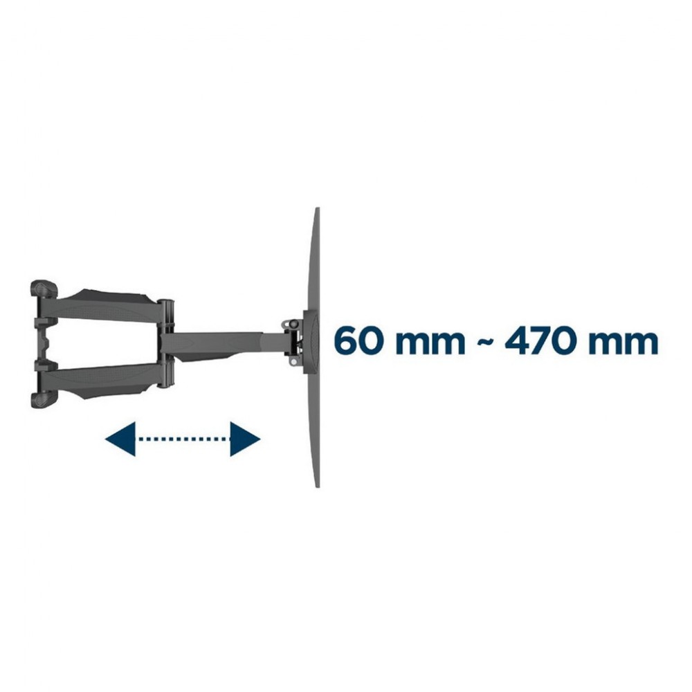 мінімальна підтримувана діагональ - 32", максимальна підтримувана діагональ - 58", VESA - 100 x 100, 200 x 200, 300 x 200, 300 x 300, 400 x 300, 400 x 400, Максимальне навантаження - 36 кг, Нахил - -2/+10 °, Поворот - 80°, відстань до стіни - 60 мм - 470 мм, кронштейн; Монтажний набір; Інструкція з експлуатації