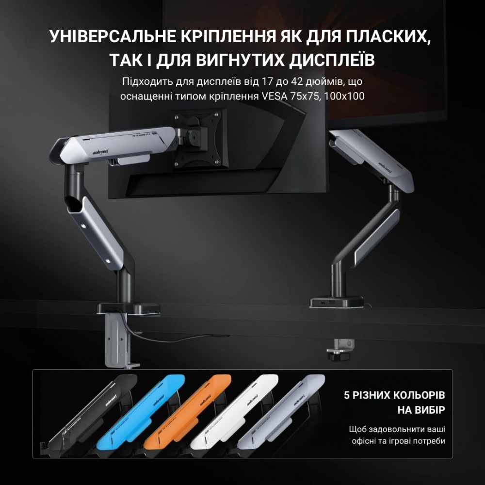 Кронштейн Anda Seat AD-W-A9X-1S-BS — це сучасне рішення для організації робочого простору, що поєднує стильний дизайн, високу функціональність і надійність. Ця модель ідеально підходить для моніторів з діагоналлю від 17 до 42 дюймів і підтримує стандарти кріплення VESA 75x75 та 100x100.