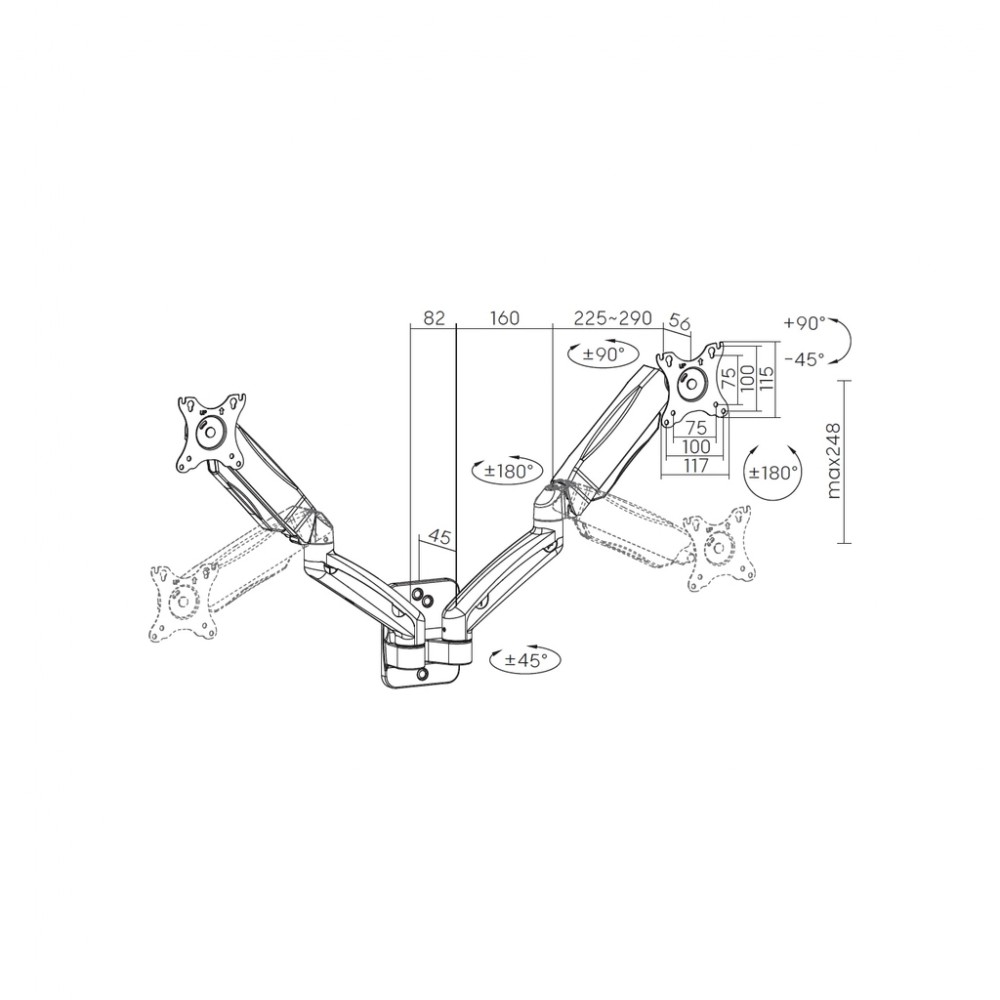 для монітора, Тип - поворотно-похилий, кількість ступенів свободи - 5, мінімальна підтримувана діагональ - 17", максимальна підтримувана діагональ - 32", VESA - 75 x 75, 100 x 100, Максимальне навантаження - 9 кг, Нахил - +90°~-45°, Поворот - 180°, кронштейн, інструкція, монтажний комплект, чорний