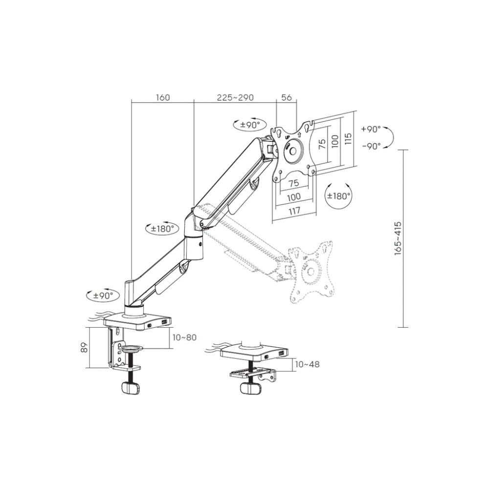 для монітора, Тип - поворотно-похилий, кількість ступенів свободи - 4, мінімальна підтримувана діагональ - 17", максимальна підтримувана діагональ - 32", VESA - 75 x 75, 100 x 100, Максимальне навантаження - 12 кг, з USB-концентратором, інструкція, елементи кріплення, чорний