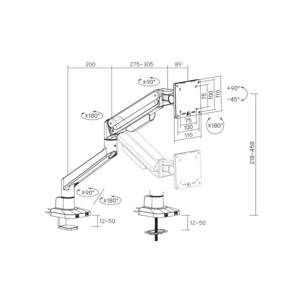 для монітора, Тип - поворотно-похилий, кількість ступенів свободи - 4, мінімальна підтримувана діагональ - 17", максимальна підтримувана діагональ - 40", VESA - 75 x 75, 100 x 100, Максимальне навантаження - 12 кг, інструкція, елементи кріплення, сірий