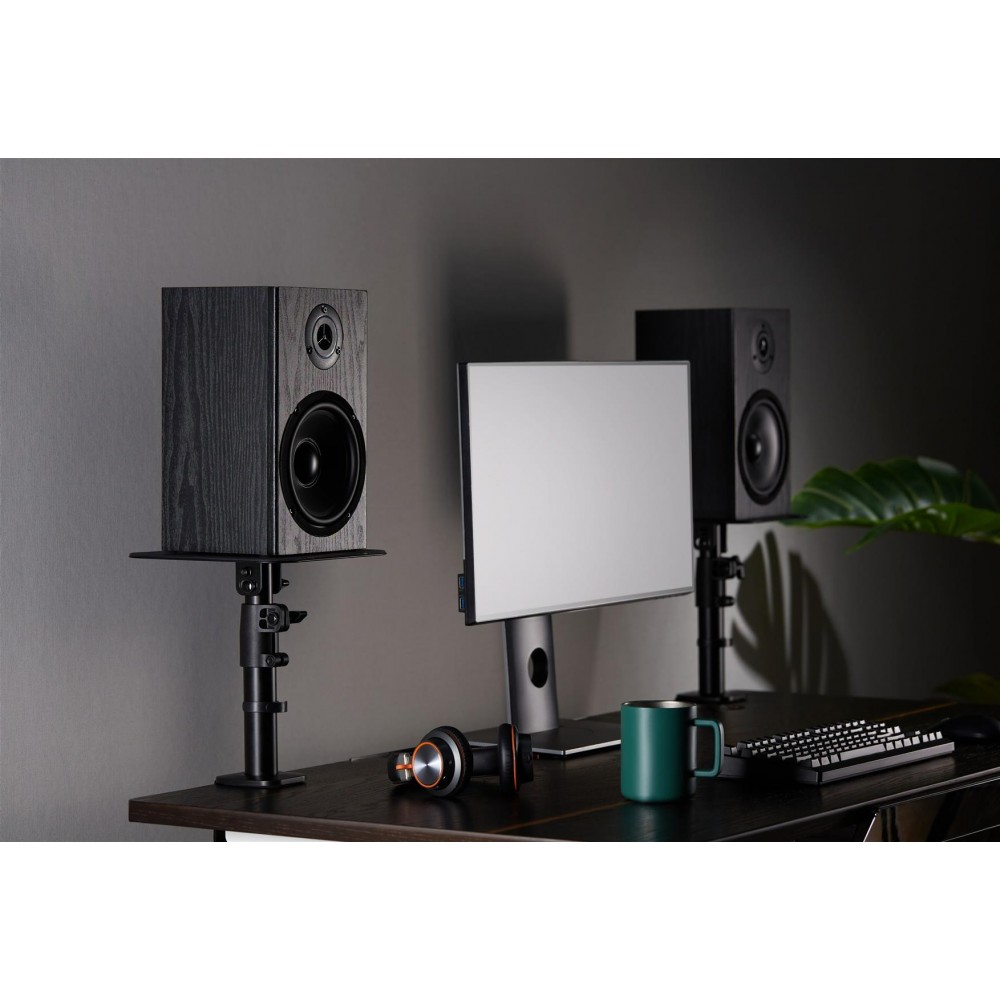 Пара стійки SS138 є ідеальним компаньйоном для поличних динаміків, що дозволяє повністю регулювати оптимальний кут прослуховування та висоту, щоб забезпечити захоплююче, високоякісне музичне враження. Унікальна конструкція верхньої силіконової накладки, що зменшує вібрацію, покращує якість і чистоту звуку, міцно тримаючи динамік. Компактна конструкція основи з кліпсою звільняє та повертає більше місця на робочому столі. А завдяки вбудованій кабельній системі забезпечується та охайне середовище.