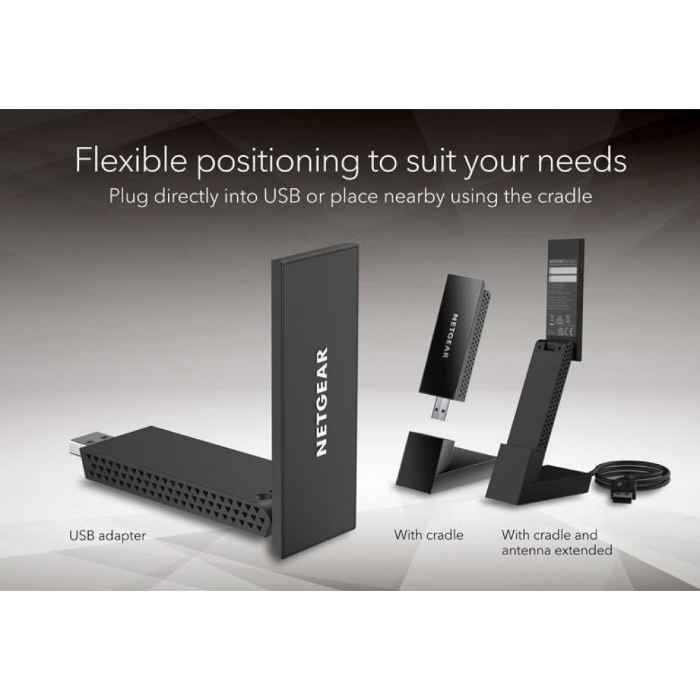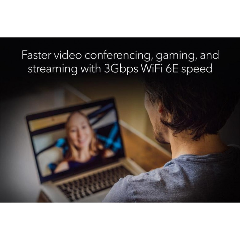 Тридіапазонний WiFi 6E адаптер NETGEAR Nighthawk A8000 з інтерфейсом USB 3.0 забезпечить бездротове підключення ноутбука або настільного комп'ютера. Адаптер легко підключається до USB-порту для швидкої та ефективної передачі даних, онлайн-ігор без затримок і потокової передачі HD-відео вдома або в дорозі. Підключіть та отримайте доступ до передового стандарту WiFi 6E, щоб насолодитися чудовою швидкістю та пропускною здатністю порівняно з WiFi 5 в умовах слабкого прийому.