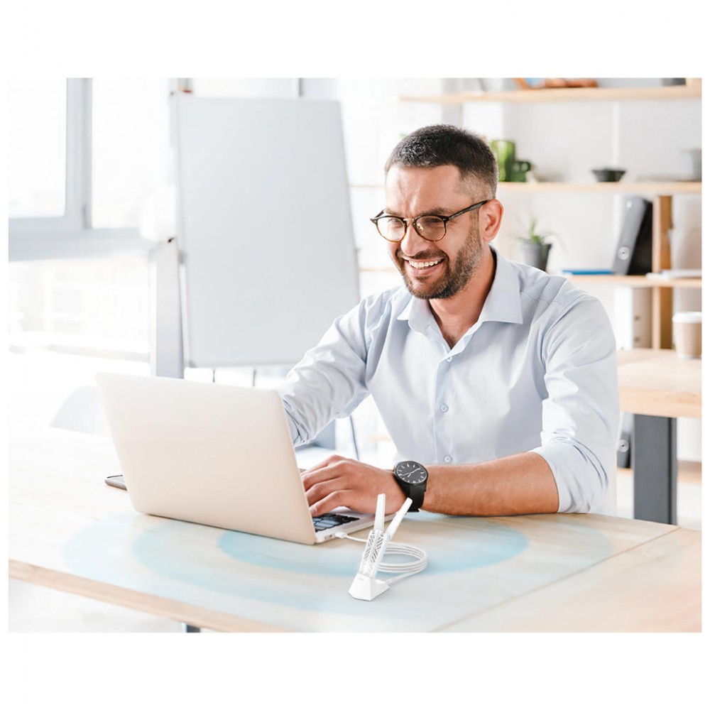 WiFi-адаптер D-Link AE65U BE7300 підключається через USB 3.0 і забезпечує тридіапазонне з'єднання Wi-Fi 7 (2,4 / 5 / 6 ГГц) з підтримкою Multi-Link Operation. Дві зовнішні антени, що регулюються на 180°, разом зі знімною підставкою дозволяють оптимізувати прийом сигналу в різних умовах розміщення. Адаптер сумісний з Windows 10 та Windows 11, підтримує WPA3 і підходить для оновлення старих ПК до сучасного стандарту бездротового зв’язку.