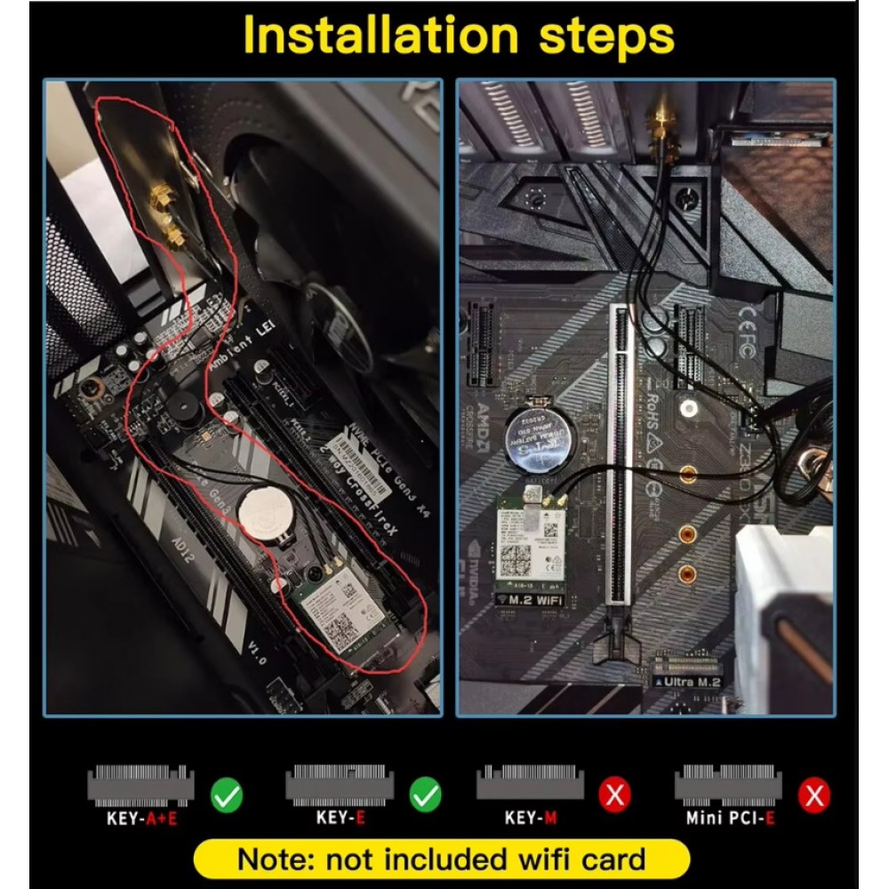 Антени дводіапазонні 2.4 та 5 ГГц, з подовжувальним кабелем M.2 MHF4 та роз’ємом RP-SMA, сумісні з AX210/AX200NGW.