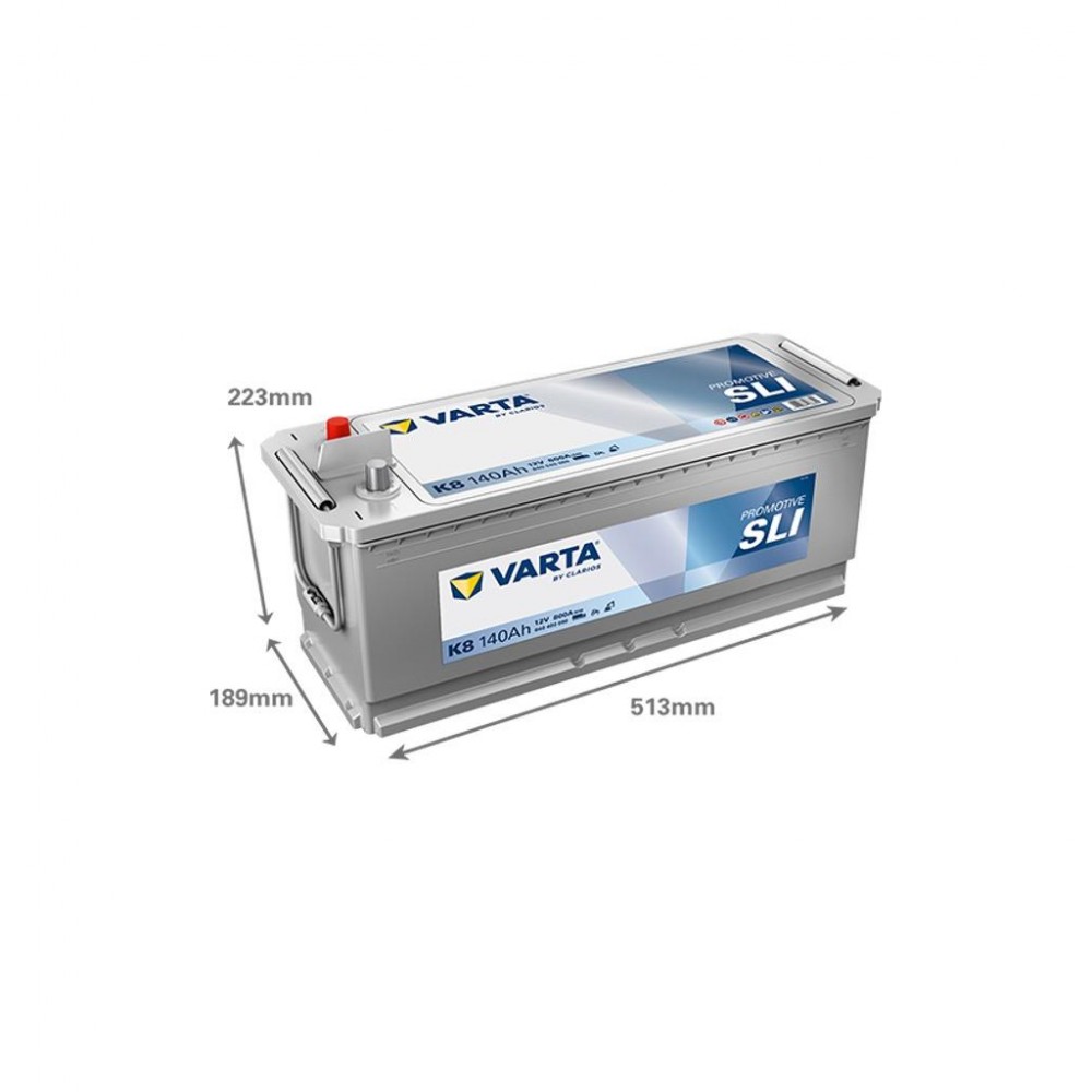 Напруга - 12 В, Ємність батареї - 140 Агод, Пусковий струм - 800 А, розташування клем - клеми збоку, Тип клем - стандартний конус (euro), стандарт - європейський, свинцево-кислотний (SLA), підходить для - вантажних авто, ширина - 189 мм, висота - 223 мм, Довжина - 513 мм