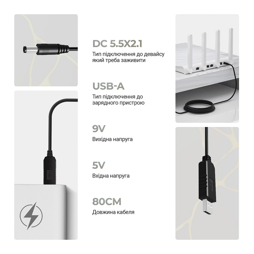 Кабель живлення USB to DC 5.5x2.1mm 9V 0.8m Armorstandart (ARM65662)
