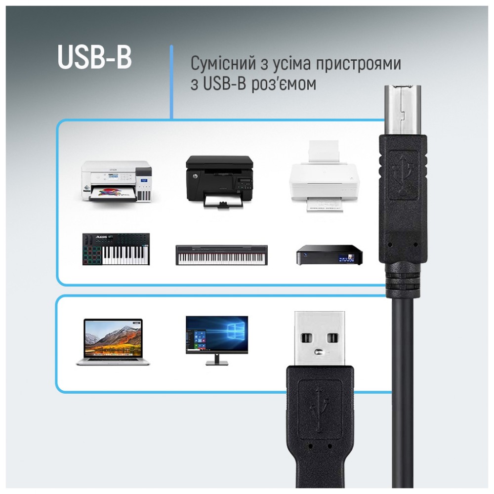 Кабель для принтера USB 2.0 AM/BM 3.0m black ColorWay (CW-CBUB073-BK)