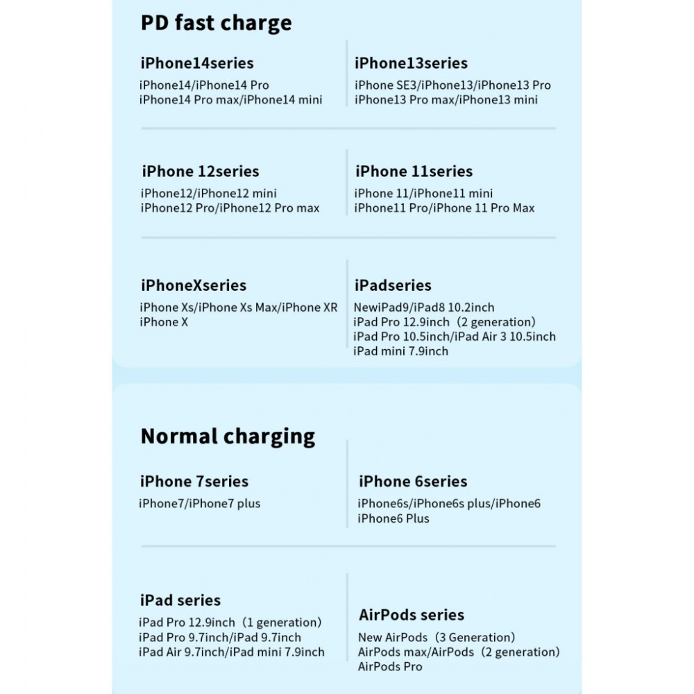 20 W, тканинне обплетення, Широка сумісність для пристроїв з портом Lightning, таких як iPad, iPhone або підключення до ноутбуків