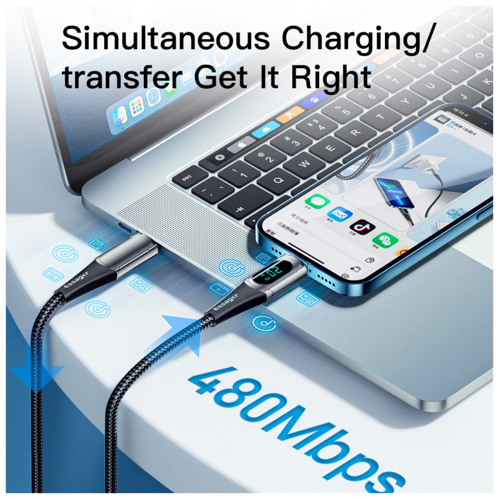Дата кабель USB-C to Lightning 2.0m 20W Digital Display black Essager (EXCTL-YDA01)