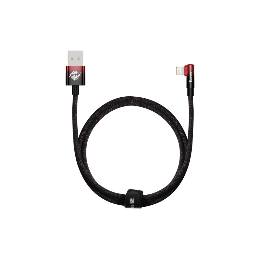 Дата кабель USB 2.0 AM to Lightning 1.0m 2.4A 90° corner black/red Baseus (CAVP000020)