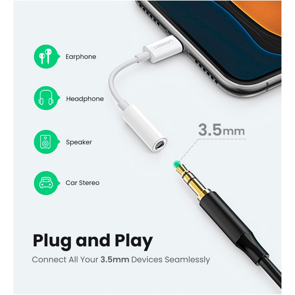 Перехідник Lightning to 3.5 mm 0.1m Headphone Jack Adapter Model US212 white Ugreen (30759)