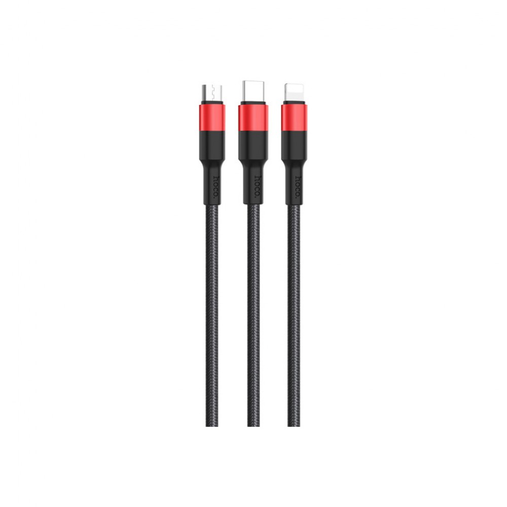 Дата кабель USB 2.0 AM to Lightning + Micro 5P + USB-C 1.0m Xpress one X26 black+red HOCO (6957531080282)