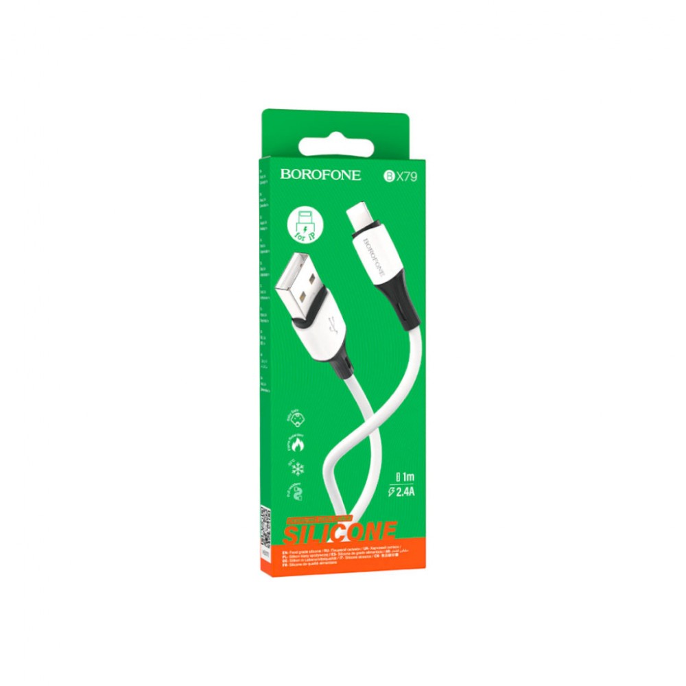 Дата кабель USB 2.0 AM to Lightning 1.0m 2.4A silicone BX79 white BOROFONE (6974443384758)