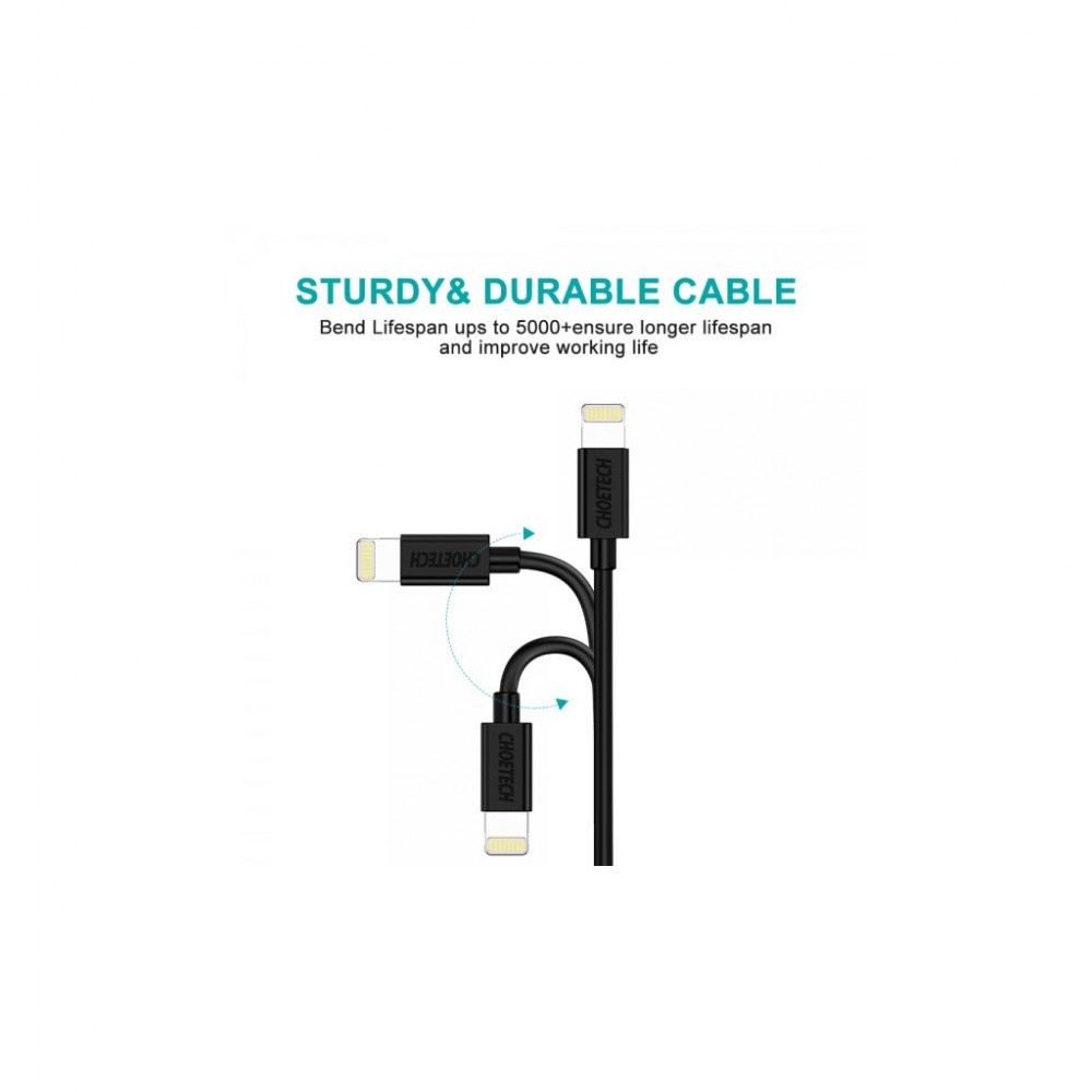 Дата кабель USB 2.0 AM to Lightning 1.8m 2.1A MFI Black Choetech (IP0027-BK)